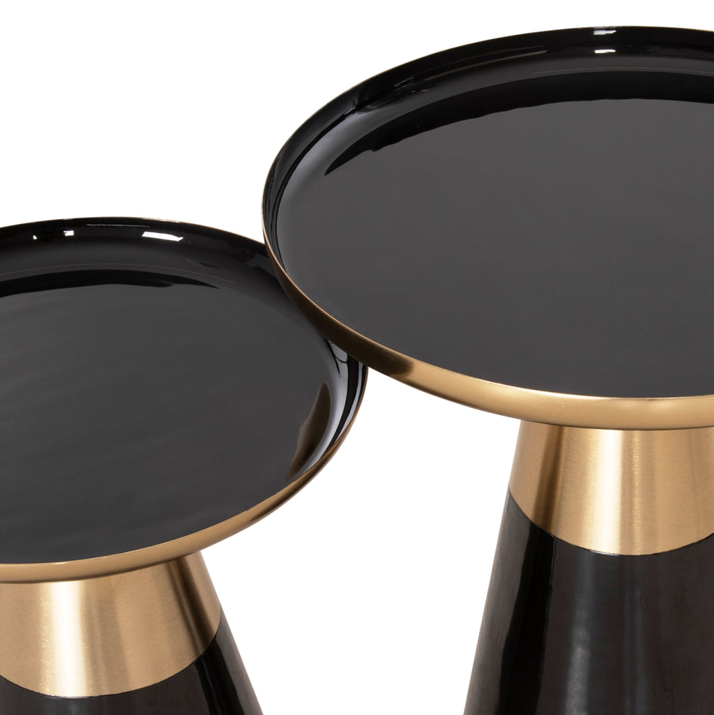 Холната маса OLUF от 2 броя е едно от новите попълнения в нашата гама. Това са 2 броя кръгли метални маси с конична основа в цвят ЧЕРЕН гланц и цвят матово злато. Повърхностите са ЧЕРНИ и имат златен бордюр. Идеален както за дома, така и за бизнес помещения. РАЗМЕРИ: Височина: Φ50x55H см.---Основа: Φ25см. Ниска: Φ41x46H см.---Основа: Φ25 см. Дебелина на повърхността: 3см. МАТЕРИАЛИ НА ИЗРАБОТКА: Комплектът е изработен от метал с емайл на повърхността, но също и на половината основа (емайл). ПОДДРЪЖКА: Конструкционните материали позволяват лесна поддръжка на масите. Достатъчно е забърсване с влажна кърпа за полиране на масите. *Комплектът се доставя разглобен във фабрична опаковка ** Цветопредаването на продукта може леко да се различава от фотографското изображение на вашия екран.