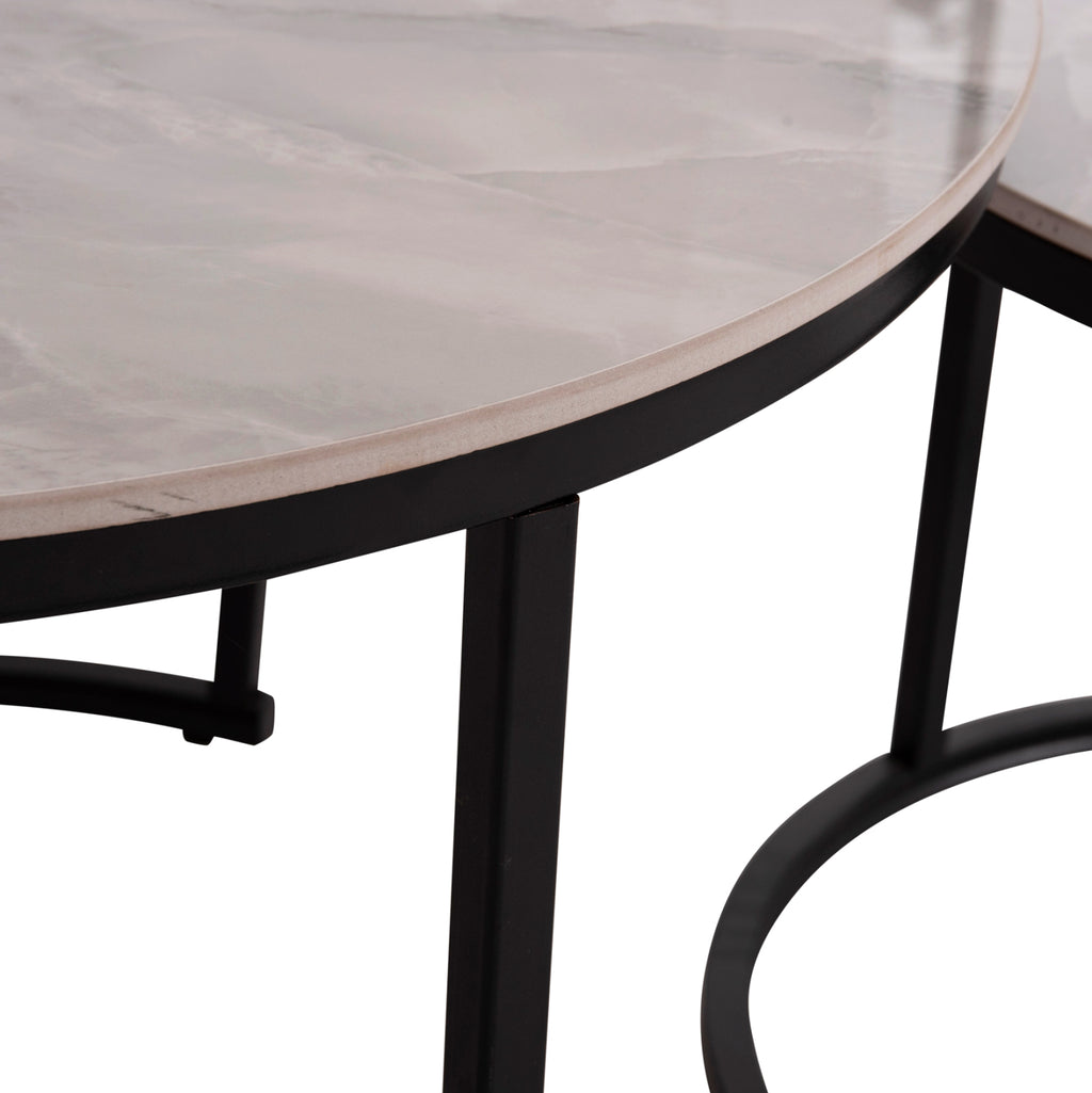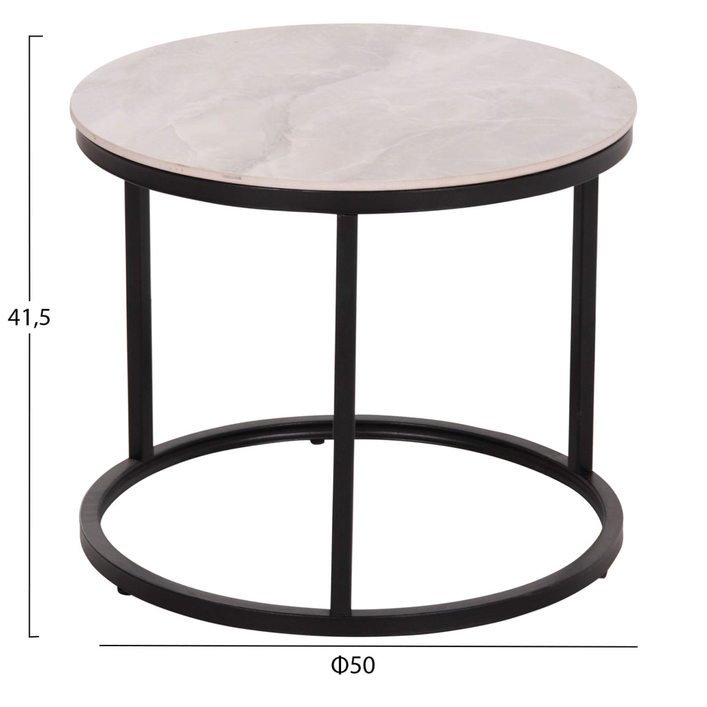 Холните масички TALOS ще ви зарадват със своя стил и практичност. Представляват 2 броя холни масички, едната по-висока, а другата по-ниска, със специална характеристика, че по-високата е поставена върху полукръгла основа с три метални крака, което позволява на по-късата да се побере и съхранява точно отдолу. Основите на двете масички са метални в черно, а повърхностите им са керамични в светло СИВО. РАЗМЕРИ: Височина: Φ70x46H см. Ниска: Φ50x41.5H см. Дебелина на керамичния плот: 12 мм. МАТЕРИАЛИ ЗА КОНСТРУКЦИЯ: Повърхностите на масите са керамични. Керамичният материал се произвежда чрез нагряване и охлаждане на различни материали, което води до твърда и топлоустойчива повърхност. Керамичните материали са a) Устойчиви на надраскване: Керамиката има твърда повърхност, която е устойчива на надрасквания и вдлъбнатини. b) Устойчиви на топлина: Едно от уникалните свойства на керамичните маси е естествената им устойчивост на топлина. c) Лесни за почистване: Непорестата природа на керамиката прави почистването изключително лесно. Краката и основите на масите са изработени от метал с електростатично боядисване. Електростатичното боядисване е процес на сухо покритие, който се използва като висококачествено метално покритие както по отношение на функционалност, така и на цялостния външен вид. ПОДДРЪЖКА: Както повърхността, така и краката се почистват лесно с влажна кърпа. ПРЕДИМСТВА: • Здрава конструкция • Качествени материали и методи на производство • Естетически красиви маси • Практични при употреба • Не заемат много място, тъй като се побират една под друга *Продуктът се доставя несглобен във фабрична опаковка ** Цветопредаването на продукта може леко да се различава от фотографското му представяне на вашия екран. "Запазена марка"