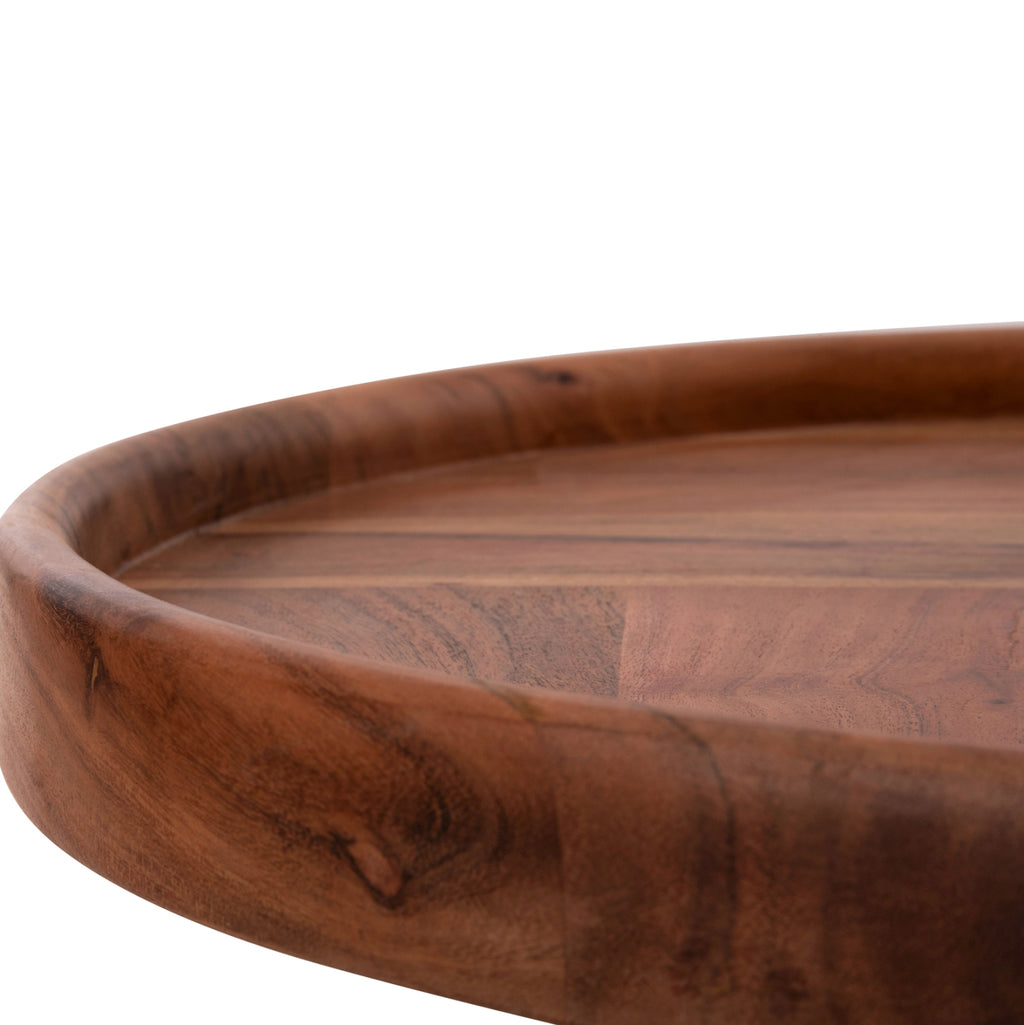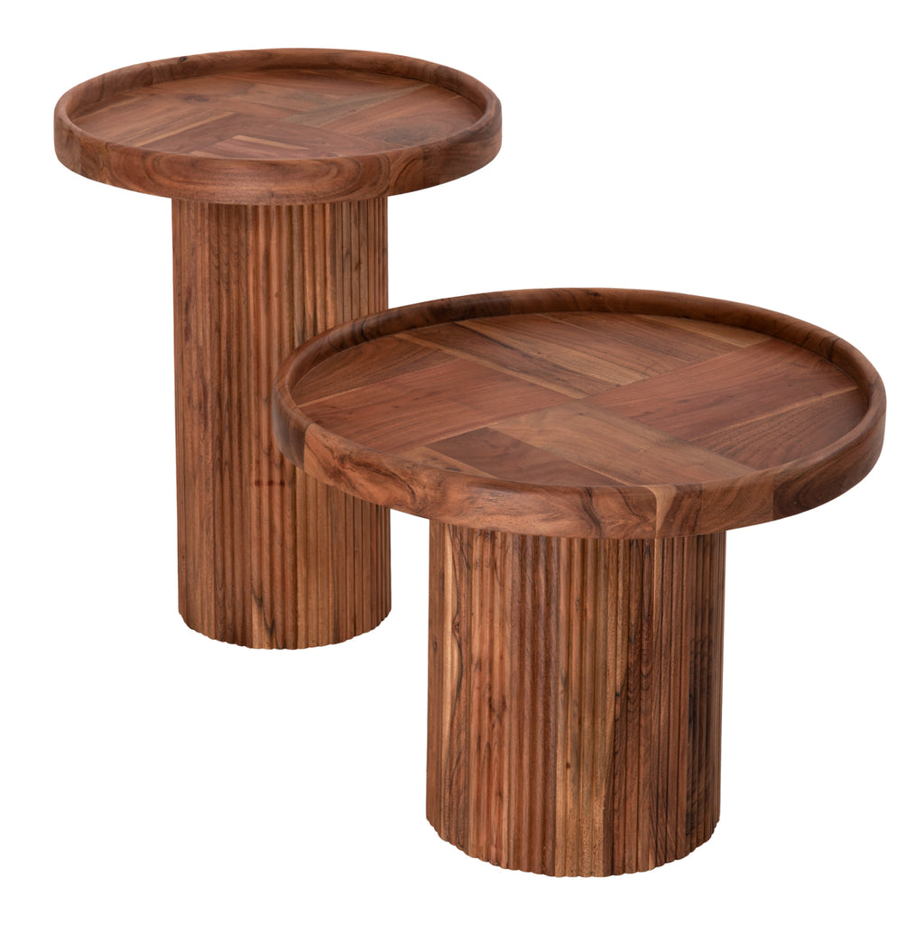 RAJJEH са кръгли маси за хол в естествен дървесен цвят. И двете се поддържат от дървена централна цилиндрична колона, върху която кръглата им повърхност е монтирана от еднакво качествено масивно дърво. Това са маси с леко повдигнат периметър на повърхността. РАЗМЕРИ: Φ50x60Y см. & Φ60x45Y см. МАТЕРИАЛИ НА ИЗРАБОТКА: Масите са изработени от масивно дърво АКАКИАС. Когато говорим за масивно дърво, имаме предвид дървета, направени изцяло от ствола на дърво. Масивната дървесина е най-скъпият избор по отношение на дървесината, но се откроява със своята вечна естетика. Ефектът, който предлага на притежателя си е наистина уникален. Акациевото дърво е един от най-добрите видове дървесина на пазара. Неговата механична якост и механични свойства се доближават до тези на други добре познати дървесини като бук, дъб, афцелия, тик и др. Има висока биологична устойчивост, т.е. проявява отлична устойчивост на действието на микроорганизми, които могат да разрушат материала и конструкцията. --Съществуващите пукнатини или тези, които могат да се образуват с течение на времето се дължат на свиването-разширяването на живия организъм, наречен масивна дървесина, и не представляват производствен дефект, придавайки оригиналност и уникален дизайн на вашето пространство. По време на производствения процес съществуващите пукнатини се изглаждат и стабилизират с материал от същата дървесина. Поради това може да има цветови вариации и разлики в размерите на продукта поради размерите на обработената дървесина. Това не са дефект на продукта. ПОДДРЪЖКА: Комплектът не се нуждае от специална поддръжка. Достатъчно е минаване с влажна кърпа, а ако има петна с нежен спрей от многото на пазара. Като цяло, дори и при петна, тайната е бързото почистване, преди дървото да има време да се "напои". *Доставя се несглобен във фабрична опаковка ** Цветопредаването на продукта може леко да се различава от фотографското представяне на вашия екран.