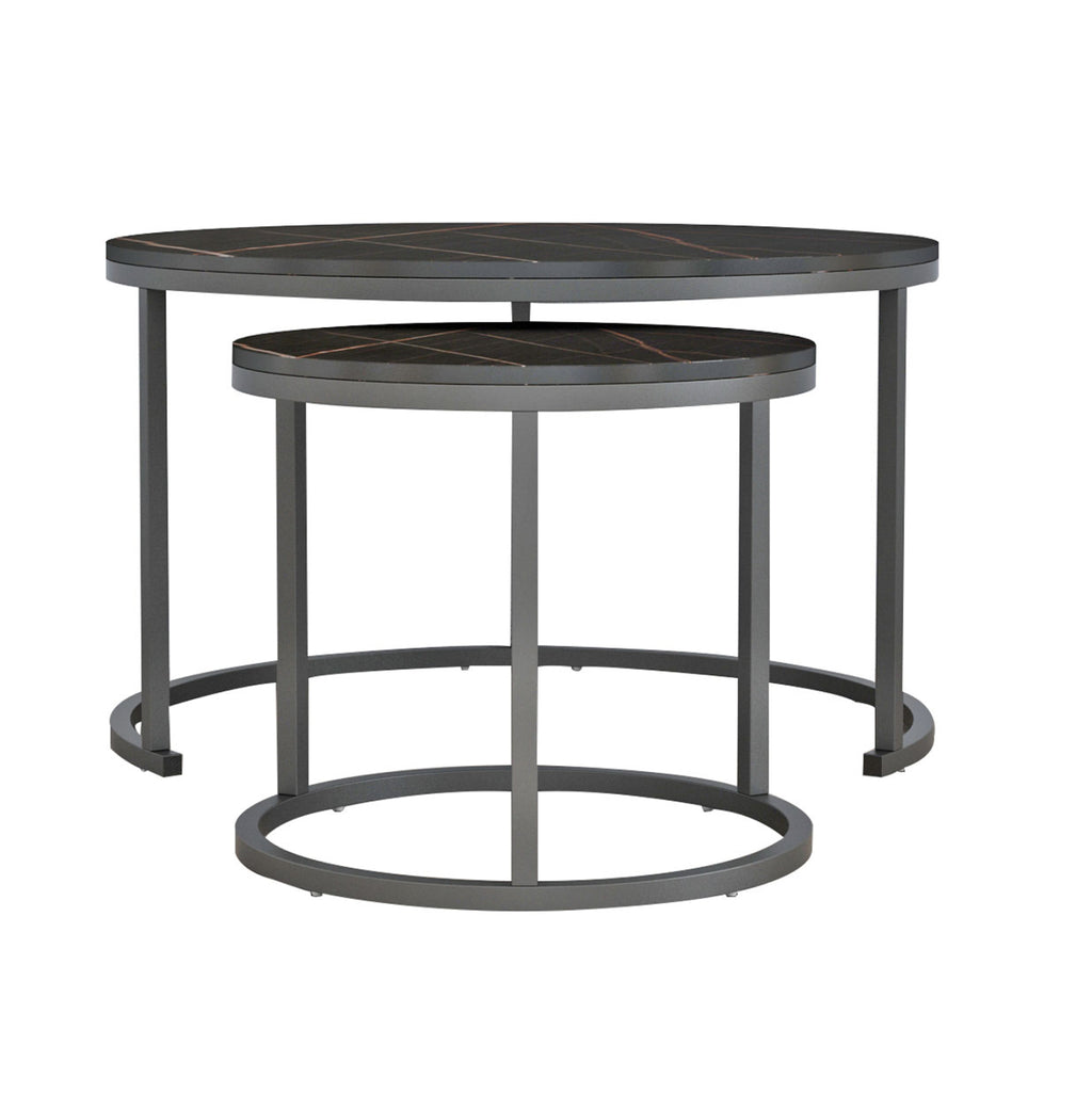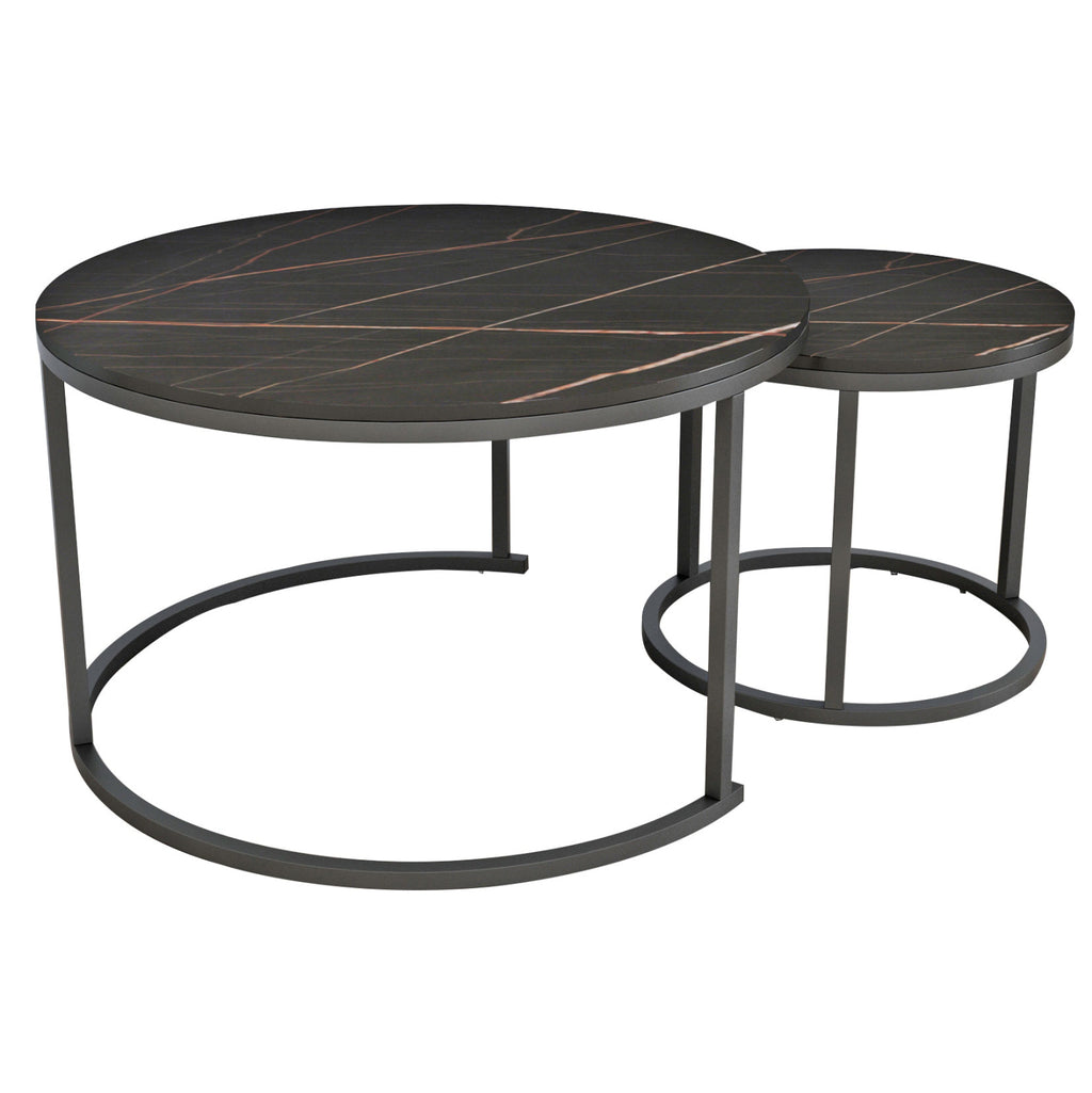 Холни маси ΜΜ8763.13----- Холните маси ΜΜ8763.13 ще Ви зарадват със своя стил и практичност. Това са 2 холни маси, една по-висока и една по-къса, с особеност, че по-високата лежи върху полукръгла основа с три метални крака, което позволява по-късата да се побира и съхранява директно отдолу. Основите и на двете маси са метални в черно, а повърхностите им са имитация на черен мрамор от MDF. РАЗМЕРИ: Височина: Φ80x52H см. Къс: Φ48x46H см. Размери на метала: 20х20мм Дебелина на МДФ: 15мм МАТЕРИАЛИ НА ИЗРАБОТКА: Повърхностите на масите са изработени от висококачествен МДФ с меламиново покритие. МДФ (влакна със средна плътност) е модерен потребителски материал, който много често се избира за интериорни мебели. Основните му характеристики са, че абсорбира минимална влага, има хомогенност в масата си, задоволителни механични свойства, отлична гладкост и много възможности за обработка. Краката и основите на масите са изработени от метал с черна електростатична боя. Електростатичното боядисване е процес на сухо покритие, използван като метално покритие предимно върху промишлено оборудване. Електростатичното боядисване е нанасяне на сух прах чрез електростатичен процес, който след това се „свързва“ към метала чрез топлина. Известен е с високо качество на облицовките както по отношение на функционалност, така и на цялостен външен вид. Електростатичните покрития са не само издръжливи, но и гъвкави. Може да се използва върху различни повърхности като метал, бетон, стомана и пластмаса. Подходящ е както за вътрешни, така и за външни приложения и е един от най-икономичните варианти за боядисване. ПОДДРЪЖКА: Както повърхността, така и краката се почистват лесно с влажна кърпа. ПРЕДИМСТВА: •Здрава конструкция •Качествени материали и начин на изработка •Естетически красиви маси •Практични за ползване •Не заемат много място, тъй като влизат една под друга
