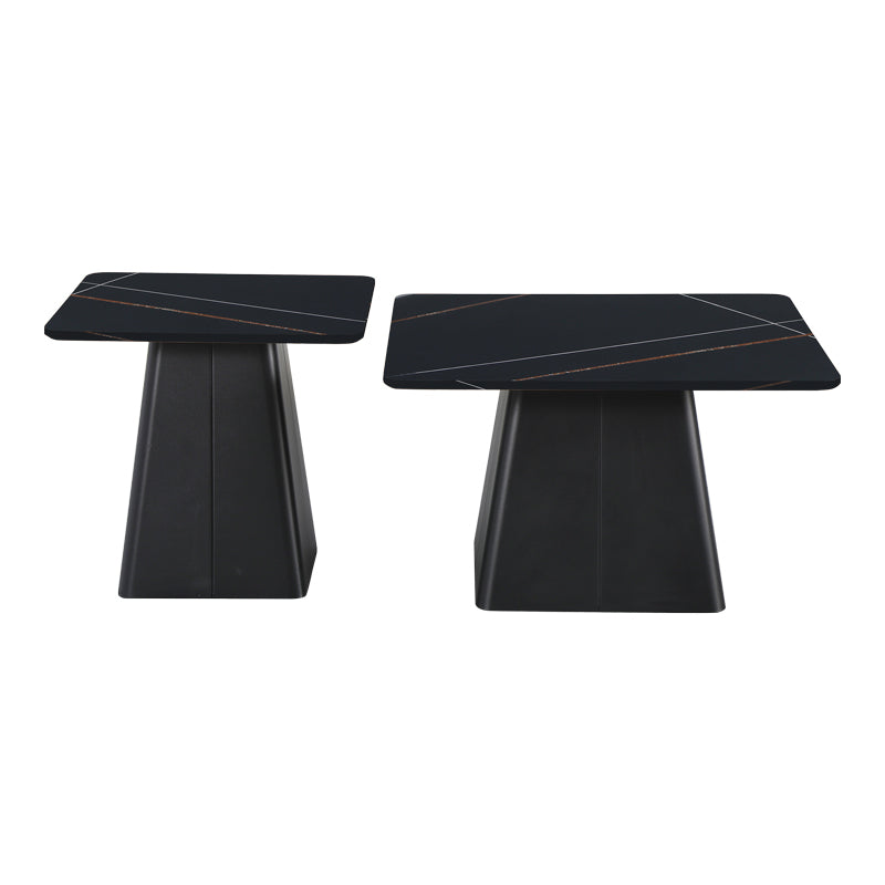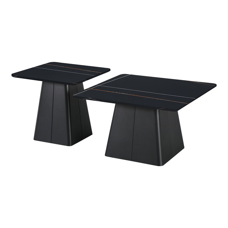 Комплект от 2 Квадратни Масички за Кафе - Черен Мрамор