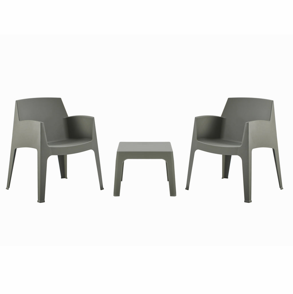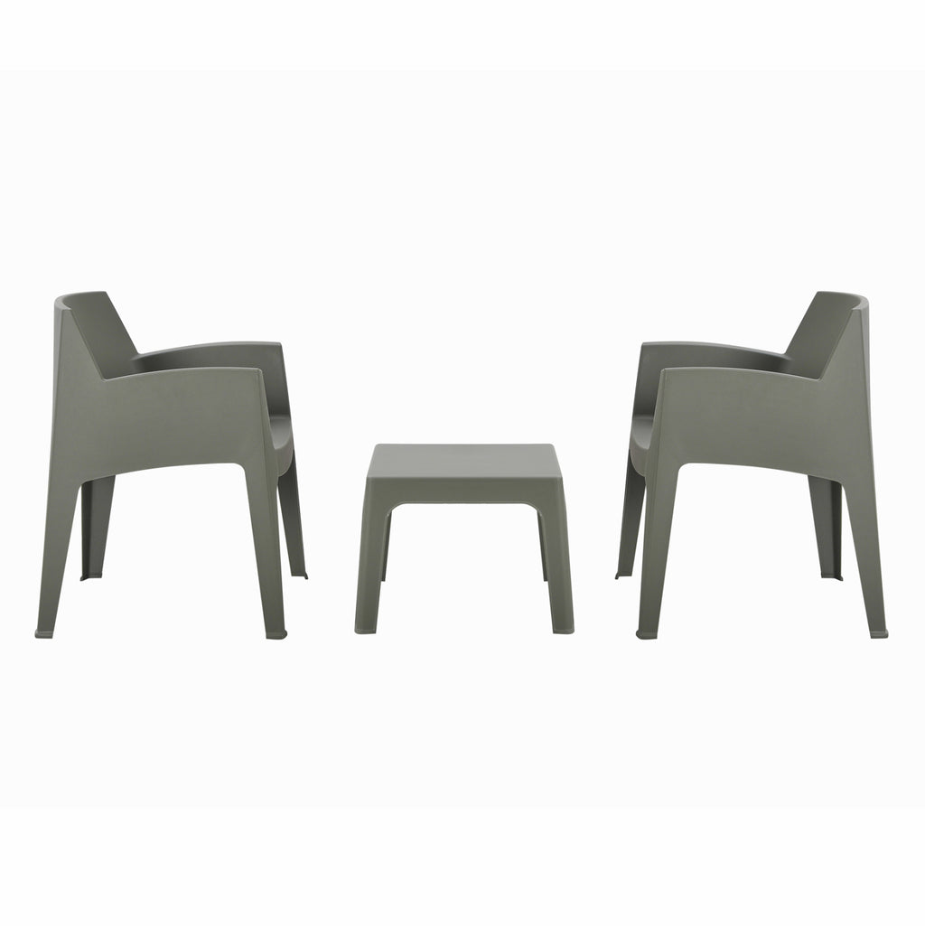 КОМПЛЕКТЪТ ВКЛЮЧВА: Квадратна масичка за кафе и 2 подреждащи се фотьойла, изцяло изработени от полипропилен в цвят ТЪМНО МАСЛИНЕНО ЗЕЛЕНО. По отношение на дизайна, той е семпъл и може да се използва по много начини, предлагайки практична и издръжлива употреба. Идеален за употреба във външни пространства, както професионални (банкетни зали, кетъринг компании и др.), така и за дома. РАЗМЕРИ: МАСИЧКА ЗА ХОЛ: 49,5x49,5x40В см ФОТЬОЛИ (2): 57x56x82,5В см. Височина на седалката: 45 см. МАТЕРИАЛИ ЗА КОНСТРУКЦИЯ: Комплектът е изработен от 100% висококачествен полипропилен. Полипропиленът е особено устойчив на тегло и вода, като същевременно има голяма устойчивост на топлина. Също така, неговата устойчивост не се ограничава до тегло, вода и температура, а е необичайно устойчив на много химически разтворители и киселини. ПОДДРЪЖКА: Мебелите от полипропилен се почистват лесно с влажна кърпа. Ако са на открито, могат да се почистват директно с течаща вода. ** Цветопредаването на продукта може леко да се различава от фотографското му представяне на вашия екран.