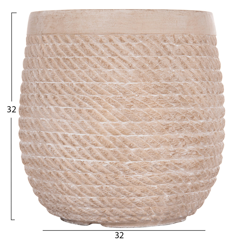 Представяме ви серията GARDENER, която включва комплекти саксии, изработени от FiberClay и е най-новото попълнение в нашата гама. Този комплект се състои от 4 кръгли саксии с шарка на точки в различни размери в цвят IVORY CIMENT. Идеален за външни пространства. РАЗМЕРИ: Малък: Φ23x23H см. Среден1: Φ32x32H cm. Среден2: Φ42x42H cm. Голям: Φ54x54H см. СТРОИТЕЛНИ МАТЕРИАЛИ: FiberClay е общ термин, който описва материал, който съчетава влакна, смола и минерали. Полученият продукт обикновено се използва за създаване на саксии и градински контейнери. ПОДДРЪЖКА: Достатъчна е суха кърпа или гъба и малко сапун и вода. При външните саксии е важно да пробиете дупки на дъното, за да може да се оттича излишната вода, но и за да се предотврати счупването на съда при замръзване. ПРЕДИМСТВА: --Саксиите от FiberClay са леки и устойчиви на ултравиолетови лъчи, което е голям плюс. Саксия от бетон или естествен камък е изключително тежка. Така че фактът, че FiberClay е лек материал, е особено важен за балконски и покривни градини. -- Методът на изработка създава много мощна есенция. Това означава, че саксиите от FiberClay са здрави и устойчиви на атмосферни влияния. **Точното цветопредаване на продукта може леко да се различава от действителния продукт поради различни настройки на монитора.