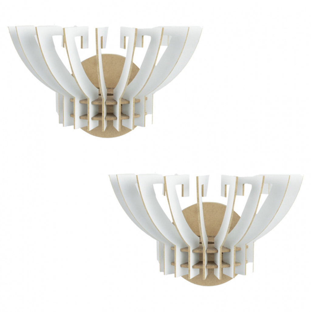 Лампите са изработени изцяло от мдф в бял абажур. Техният дизайн и форма създават резултат, който ще харесате. Модерен дизайн, който лесно се комбинира в офиса, всекидневната, спалнята или дори в бизнеса и придава модерен стил. Приемат крушки E27 до 60W, които не са включени в комплекта. Размери: 32x22x19H см. (x2) Подходящ за E27 max 45-60W лампа от европейско производство и произход. Продуктът се предлага във фабрична опаковка.