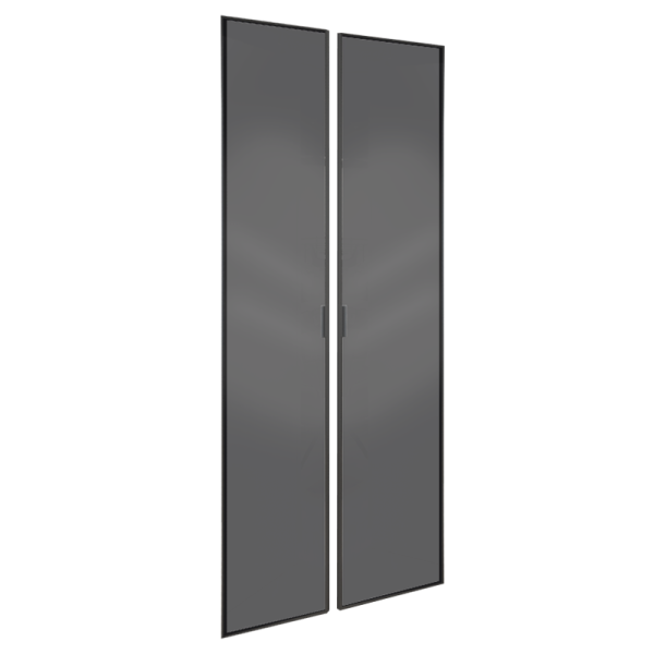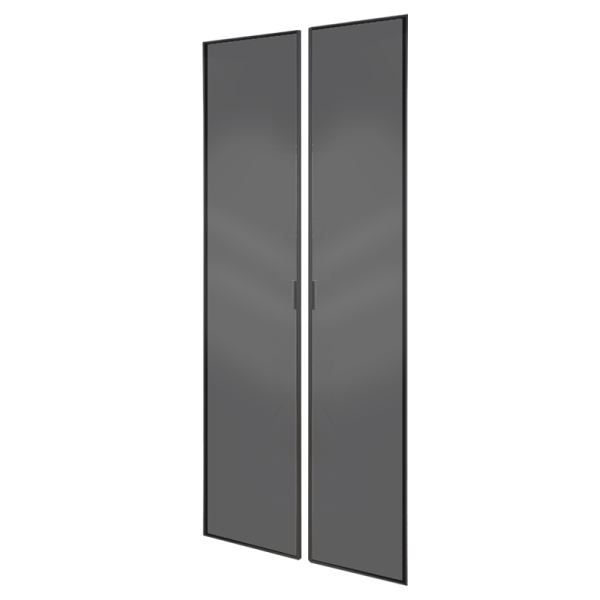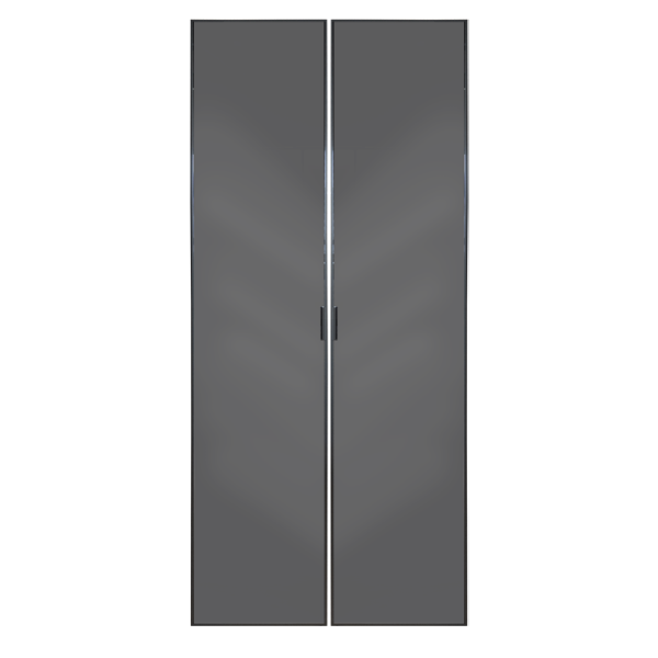 Комплектът стъклени врати за двукрилен гардероб YORK графит ще придаде стилен акцент и завършеност на всяко модерно пространство. Изработени от алуминиев профил и опушено стъкло с огледален ефект, вратите са предназначени единствено за моделите от серията YORK в цвят графит. В комплекта са включени обков и панти с механизъм за плавно затваряне.