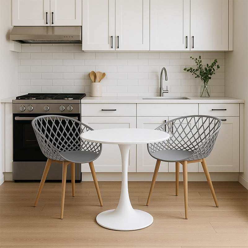 Минимален комплект за хранене, който перфектно съчетава авангарден дизайн с издръжливи материали - идеален за подобряване дори на най-малкото пространство.