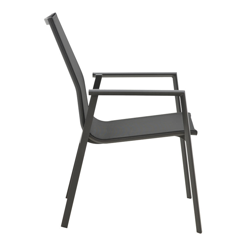 - Здрава рамка от висококачествен алуминий, устойчива на натоварване и износване. Корпусът на стола е изработен от висококачествен текстилен плат. Textilene е силно устойчив на UV лъчи и влага, като същевременно позволява на кожата да „диша“, осигурявайки комфорт при седене.