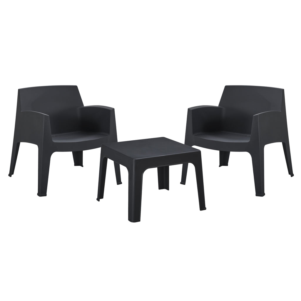 КОМПЛЕКТАТ ЗА ЛОНДОН ВКЛЮЧВА: -2 фотьойла с ниска седалка, изработени от лят полипропилен, и -1 квадратна масичка за кафе, изработена от лят полипропилен, всички в ЧЕРЕН цвят. Комплектът е идеалното предложение за употреба във външни пространства, както за професионална, така и за дома. РАЗМЕРИ: ФОТЬОЛИ: 62,5x48,5x73В см. Височина на седалката: 38 см. МАСА: 49,5x49,5x40В см МАТЕРИАЛ ЗА ИЗРАБОТКА: -100% висококачествен полипропилен. Полипропиленът е особено устойчив на тегло и вода, като същевременно има отлична топлоустойчивост. Също така, неговата устойчивост не се ограничава до тегло, вода и температура, но е необичайно устойчив на много химически разтворители и киселини. ПОДДРЪЖКА: Мебелите от полипропилен се почистват лесно с влажна кърпа. Ако са на открито, могат да се почистват директно с течаща вода. ПРЕДИМСТВА: •Комфорт •Издръжливост •СТИРАЩИ СЕ фотьойли •Съотношение цена-качество ** Цветопредаването на продукта може леко да се различава от фотографското му представяне на вашия екран.