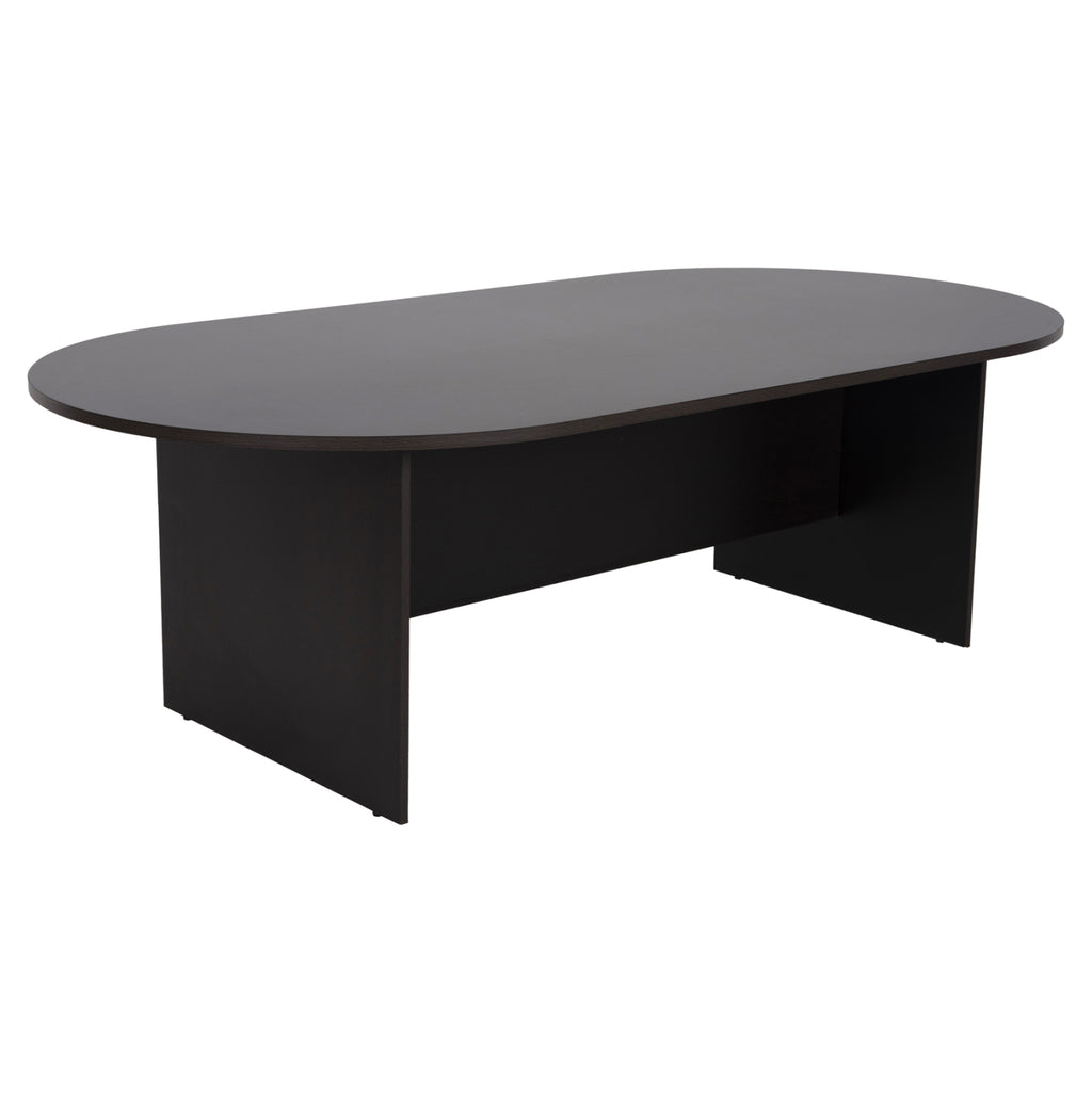 Конферентното бюро SIENNA с овална форма е качествено и модерно предложение за вашето бизнес пространство. Цветът WENGE в цялата конструкция, съчетан с големите размери, я правят внушителна в пространството. Комбинирайте го със столове или кресла с подходяща естетика и създайте красиво конферентно пространство. РАЗМЕРИ: 240x120x75H см. Дебелина на повърхността: 2,5 см. Разстояние между краката: 157-161x80см. КОНСТРУКТИВНИ МАТЕРИАЛИ: Цялото бюро е изработено от висококачествен меламин. Меламинът е вид дървесина под формата на ПДЧ. ПДЧ са продукти, които имат формата на плоча (панел). Като материал е много издръжлив и с голяма твърдост. Така че това е синтетичен материал с много твърда повърхност, което го прави много устойчив на драскотини, абразия и петна. ПОДДРЪЖКА: Меламинът, който е строителният материал, се почиства много лесно от петна благодарение на твърдата си повърхност. Можете да избършете всички повърхности с влажна кърпа, а за упорити петна можете да използвате мек почистващ препарат. КАКВО ХАРЕСВАМЕ: •Здрава конструкция •Качествени материали •Големи размери •Естетически красива конструкция •Лесен за сглобяване (препоръчваме сглобяване от 2-ма души) *Продуктът се доставя несглобен във фабрична опаковка с подробни инструкции за сглобяване ** Цветопредаването на продукта може леко да се различава от фотографското представяне на вашия екран.
