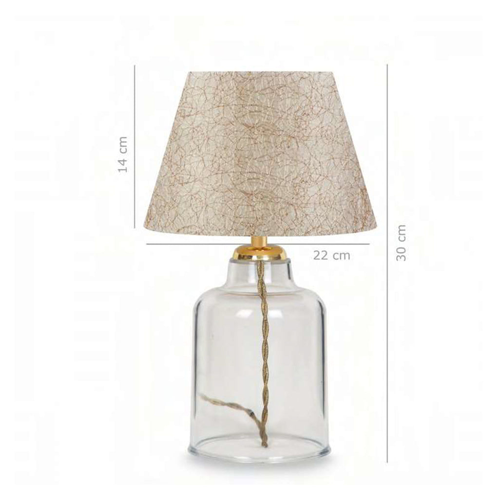 Осветете желаното пространство с гъвкавата настолна лампа с прозрачен пластмасов корпус. Идилична комбинация от небрежен чар и изискан дизайн придава безвремие, което няма да остарее. Прозрачното стъбло поддържа тази настолна лампа лека и ефирна. Мръснобялата основа с формата на камбана и „шапката“ се комбинират, за да придадат на тази лампа перфектната текстура и характер на селска къща. Златната колона, която започва да се показва в горната част на стеблото с кабела в златист цвят, прави красива комбинация, обединявайки целия външен вид и добавяйки към простата елегантност на лампата. ТЕХНИЧЕСКИ ХАРАКТЕРИСТИКИ: Тип цокъл на крушка: Е27 Цокъл на крушка Тип на крушката: LED- Максимална 15w Височина на цокъла: 14см. Диаметър на шапката: 22см. Обща височина: 30 см. Дължина на кабела: 150 см. Има CE сертификат. МАТЕРИАЛ ЗА ПРОИЗВОДСТВО: Основата-тяло на лампата е изработена от прозрачна пластмаса, осигуряваща голяма устойчивост във времето и лесно почистване. "Шапката" е изработена от плат с всички предимства, които предлага. Стълбът на лампата е метален. ПОДДРЪЖКА: Лесно почистване може да се извърши с обикновена кърпа за прах за ежедневно почистване. Но за най-добър резултат избършете всички повърхности с влажна кърпа и вашата лампа ще изглежда като нова. ПРЕДИМСТВА: Лампата може да се използва в кафенета, ресторанти, хотели и дори у дома! Тя е "много талантлива" и красива. Благодарение на простия си дизайн, той лесно се комбинира с околното пространство, независимо дали е лека класическа декорация или по-модерна. Той ще осигури равномерно осветяване на пространството, тъй като "шапката" е отворена отгоре, а прозрачната основа ще действа като светлоумножител, което ще ви изненада приятно.
