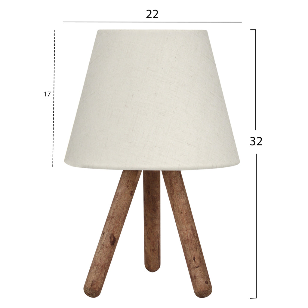 Много специална и модерна настолна лампа. Тя няма класическата основа на настолна лампа, а стои върху дървен триножник с шапка, опряна върху статива. Дизайнът напомня повече на подова лампа, отколкото на настолна лампа. Краката са с размер и форма на палка в кафяв цвят, а капачката на лампата е в мръсно бял цвят и има кръгла и трапецовидна форма. Тези видове лампи не са предназначени за лампи за четене и това винаги трябва да се има предвид при избора им. Те са чисто декоративни и съвпадението им с околното пространство трябва да е хармонично. Тази лампа е модерна, стилна и с удобни размери, предоставяща безброй възможности за „свързване“ с останалата част от вашия декор. Това е едно малко произведение на изкуството. ТЕХНИЧЕСКИ ХАРАКТЕРИСТИКИ: Цокъл на крушка: Е27 Цокъл с обикновена крушка Тип на крушката: LED 20w- Максимум 60w Размери на цокъла: 22x17см. Обща височина: 32 см. Дължина на кабела: 150 см. Има CE сертификат. МАТЕРИАЛИ НА ИЗРАБОТКА: Краката на лампата са изработени от MDF дърво. Характерното за MDF е, че не абсорбира влага, което му придава издръжливост и устойчивост във времето. "Шапката" е изработена от плат и PVC. Използването на PVC в комбинация с плат дава издръжливост и лекота на почистване. ПОДДРЪЖКА: Лесно почистване може да се извърши с обикновена кърпа за прах за ежедневно почистване. Но за най-добър резултат избършете всички дървени повърхности с влажна кърпа и вашата лампа ще изглежда като нова. Избягвайте използването на химически почистващи препарати, защото цветовете могат да се променят. ПРЕДИМСТВА: Лампата може да се използва у дома, но също и в кафенета, ресторанти, хотели и др. Тя е "мултиталантлива" и красива. Благодарение на простия си дизайн, той лесно се комбинира с околното пространство, независимо дали е лека класическа декорация или по-модерна. Избирайки лампа по ваш вкус по отношение на нейния цвят или температура на светлината и т.н., тя ще добави сладост към атмосферата с финото си и релаксиращо осветление, което прави много трудно да устоите на нейната компания!