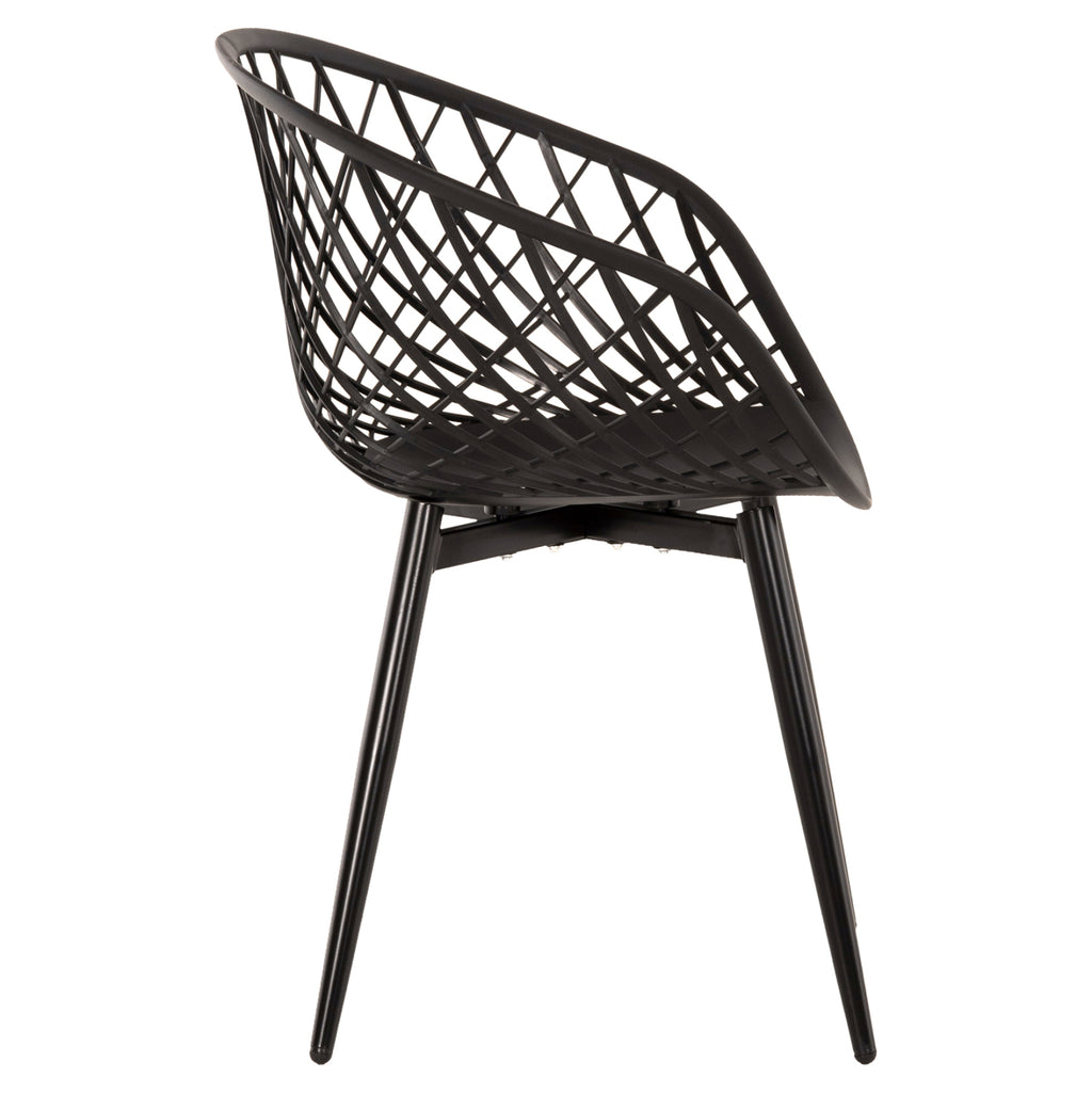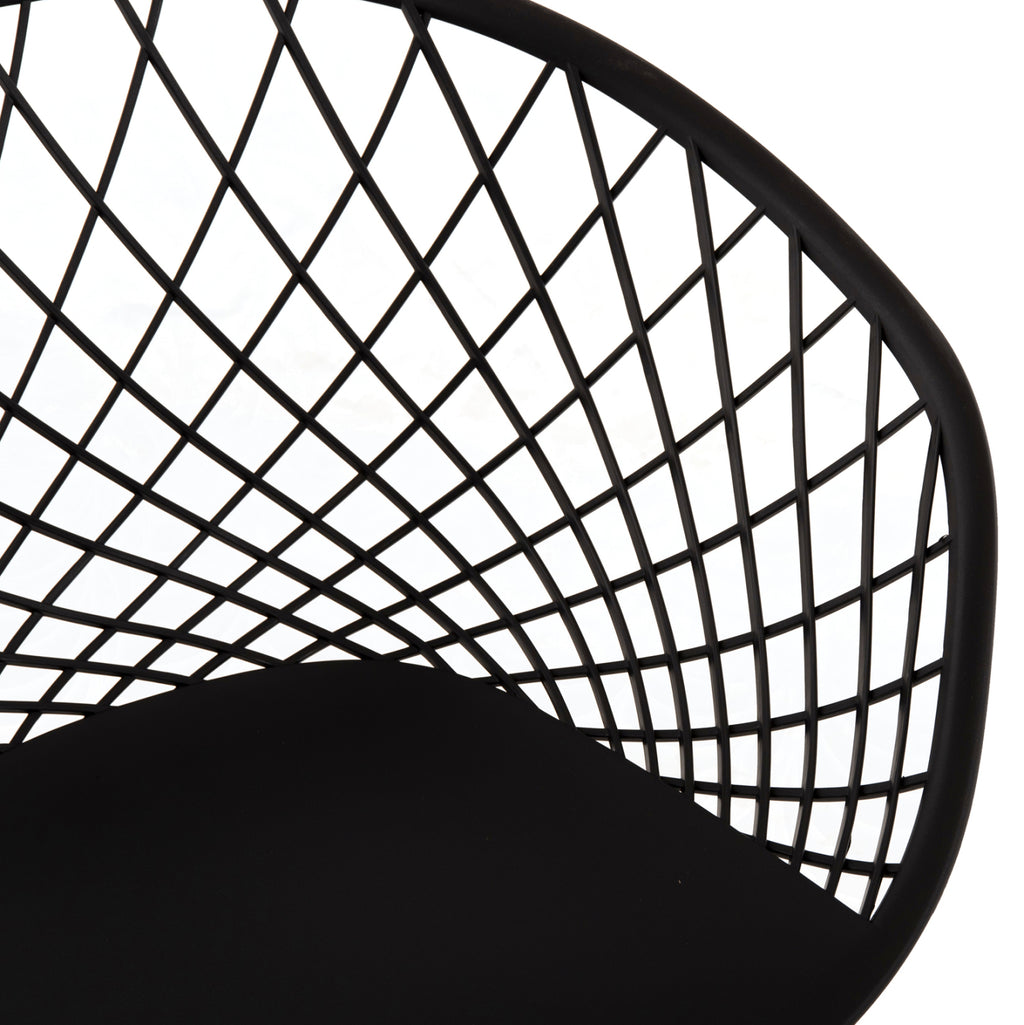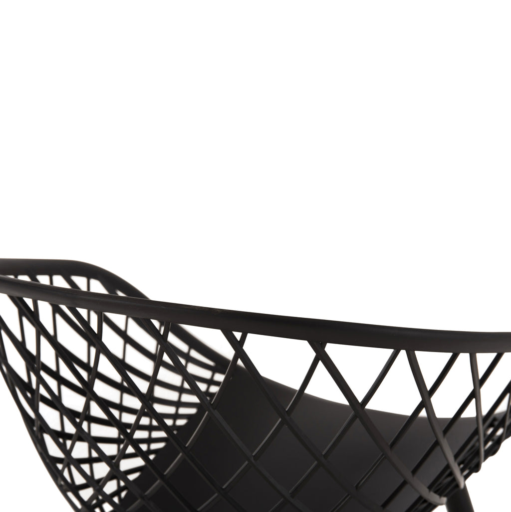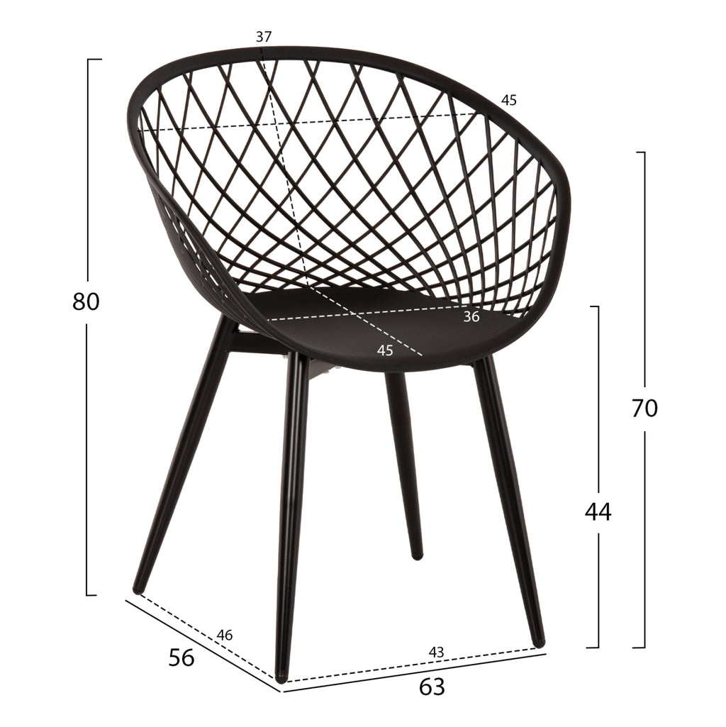 Кресло ARIADNE е качествено и елегантно на външен вид и със сигурност ще привлече окото. Облегалката и седалката са монолитна полипропиленова част в ЧЕРНО. Гърбът всъщност е с "мрежеста" форма, което го прави приятен и лек. Основата на седалката и краката са метални в ЧЕРЕН цвят. Цялата конструкция е лека и удобна и ще се превърне в любимата седалка във всяко пространство, благодарение на своята практичност. Идеален избор и за професионална употреба, като кетъринг и др. ТЕХНИЧЕСКИ ХАРАКТЕРИСТИКИ: РАЗМЕРИ: 63x56x80H cm. Височина на седалката: 44 см. Размери на седалката: 36х45 см. Размер на гърба: 45х37см. Разстояние между краката: 43х46 см. МАТЕРИАЛИ НА КОНСТРУКЦИЯТА: Облегалката и седалката са изработени от подсилен полипропилен. Полипропиленът е особено устойчив на тегло и вода, като същевременно има голяма устойчивост на температури до 125 градуса по Целзий. Освен това неговата издръжливост не се ограничава до тегло, вода и температура, но е необичайно устойчив на много химически разтворители, киселини и основи. Краката са метални с електростатична боя. Електростатичното боядисване е процес на сухо покритие, използван като метално покритие. Електростатичното боядисване е нанасяне на сух прах чрез електростатичен процес, който след това се „свързва“ към метала чрез топлина. Подходящ е както за вътрешни, така и за външни приложения. ПОДДРЪЖКА: Едно минаване с мокра кърпа е достатъчно за поддръжка на фотьойла. *Креслото се доставя разглобено във фабрична опаковка