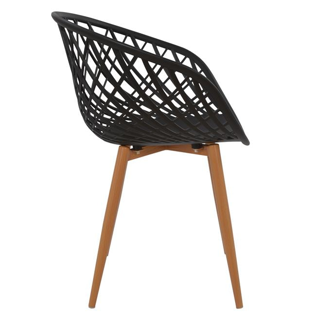 В зависимост от декорацията на вашия дом, можете да намерите правилните мебели, които ще съставят една красива и модерна трапезария. Конструкцията на кресло ARIADNE е изработена от метал, а седалката на стола е от полипропилен в черен нюанс. Краката са метални за по-голяма издръжливост, боядисани в цвета на дървото, което им придава вид на природата. Размери: 62.5x56x80 см. Височина на седалката: 44,5 см. Размери на седалката: 40х42 см. ВНИМАНИЕ: Продуктът се предлага разглобен в опаковка