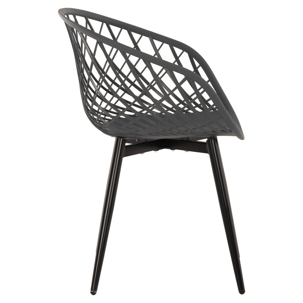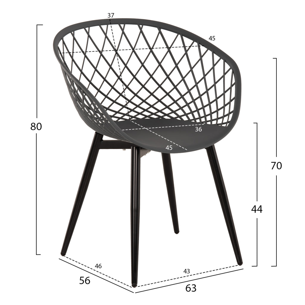 Кресло ARIADNE е качествено и елегантно на външен вид и със сигурност ще привлече окото. Облегалката и седалката са едно цяло лято парче полипропилен в СИВ цвят. Гърбът всъщност е с "мрежеста" форма, което го прави приятен и лек. Основата на седалката и краката са метални в ЧЕРЕН цвят. Цялата конструкция е лека и удобна и ще се превърне в любимата седалка във всяко пространство, благодарение на своята практичност. Идеален избор и за професионална употреба, като кетъринг и др. ТЕХНИЧЕСКИ ХАРАКТЕРИСТИКИ: РАЗМЕРИ: 63x56x80H cm. Височина на седалката: 44 см. Размери на седалката: 36х45 см. Размер на гърба: 45х37см. Разстояние между краката: 43х46 см. МАТЕРИАЛИ НА КОНСТРУКЦИЯТА: Облегалката и седалката са изработени от подсилен полипропилен. Полипропиленът е особено устойчив на тегло и вода, като същевременно има голяма устойчивост на температури до 125 градуса по Целзий. Освен това неговата издръжливост не се ограничава до тегло, вода и температура, но е необичайно устойчив на много химически разтворители, киселини и основи. Краката са метални с електростатична боя. Електростатичното боядисване е процес на сухо покритие, използван като метално покритие. Електростатичното боядисване е нанасяне на сух прах чрез електростатичен процес, който след това се „свързва“ към метала чрез топлина. Подходящ е както за вътрешни, така и за външни приложения. ПОДДРЪЖКА: Едно минаване с мокра кърпа е достатъчно за поддръжка на фотьойла. *Креслото се доставя разглобено във фабрична опаковка
