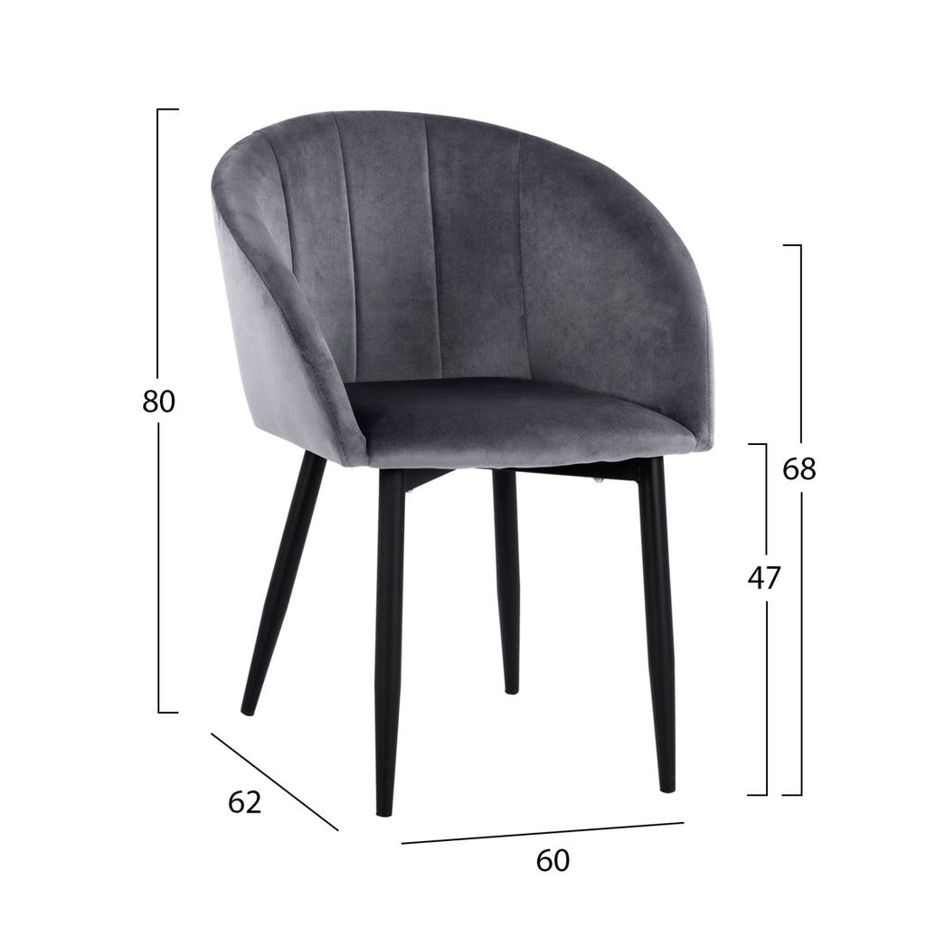 Кресло BESSIE с тапицирани в сиво кадифе ръце и черни метални крака. Нотка елегантност, съчетана с безброй цветови вариации и форми. Леко лъскавата материя с нейния неповторим вид и усещане не без причина е една от живите тенденции par excellence. Плюшеното покритие прави всичко различно! Размери: 60x62x80Y см. Височина на седалката: 47 см. Височина на ръцете: 68см. Размери на седалката: 42х43 см.