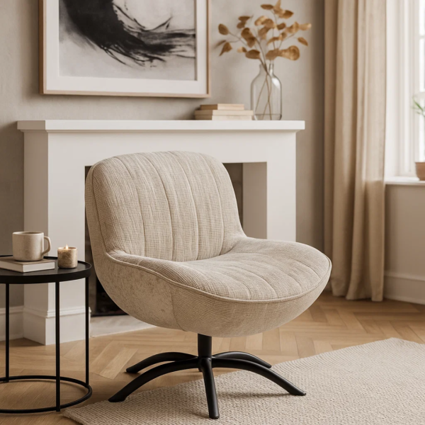 Кресло CARLY впечатлява със своя модерен дизайн, мека дамаска и комфортна седалка с изразени вертикални шевове. Металната основа с прахово покритие осигурява стабилност, а функцията за въртене на 360° добавя удобство в ежедневието. Стилен акцент за всеки интериор.