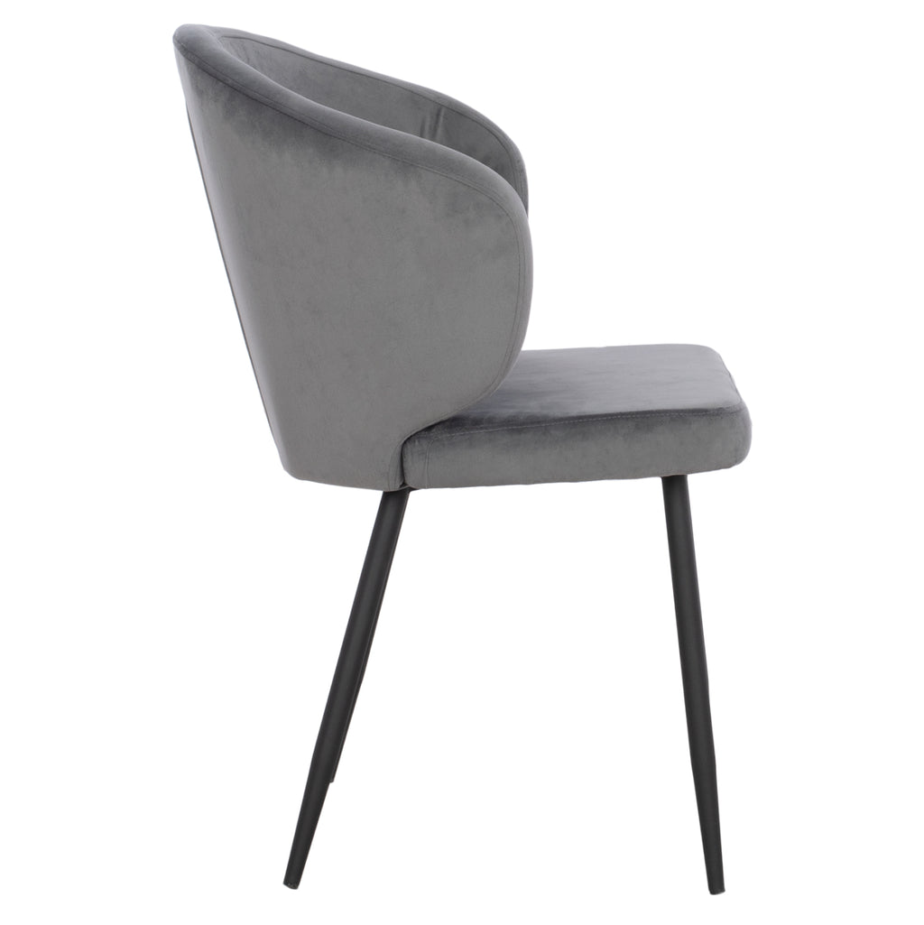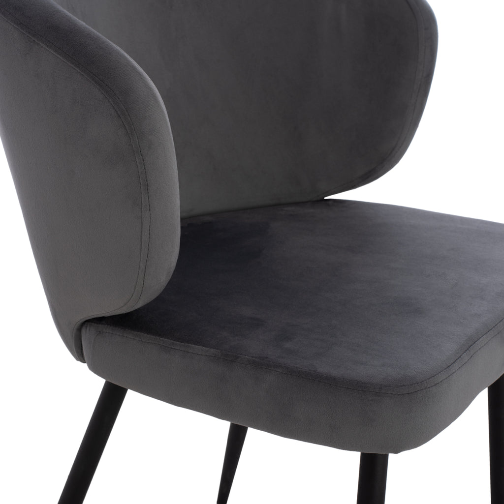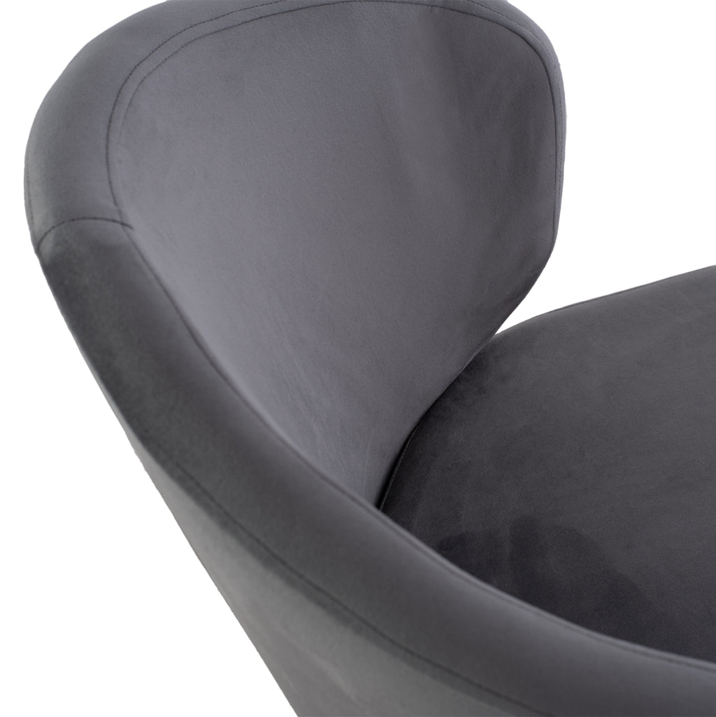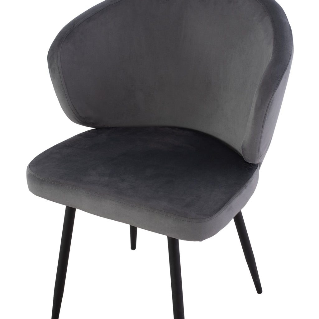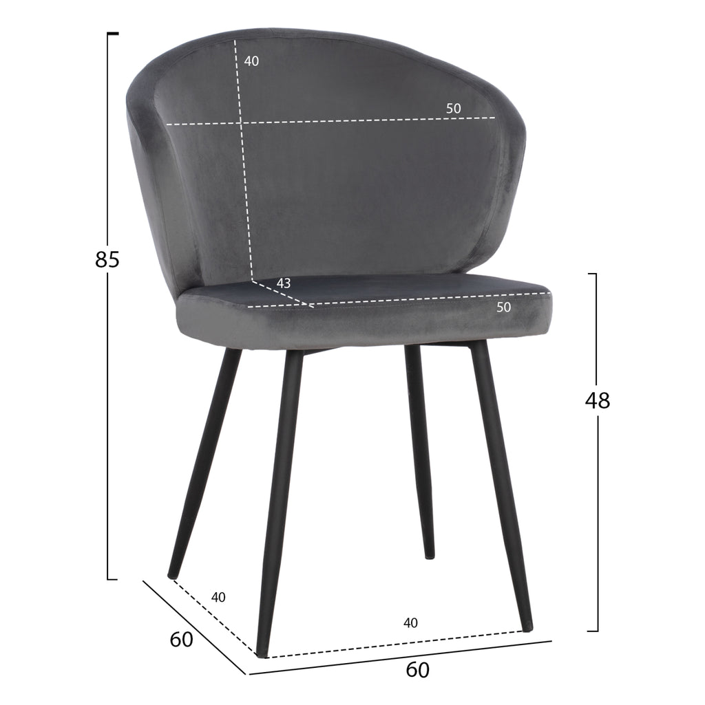 Кресло GIA в неутрален сив нюанс е изработено от луксозна кадифена дамаска с черна метална конструкция. Оригиналният му дизайн е елегантен и ергономичен - височината на гърба поддържа и обгръща кръста и гърба за максимална поддръжка.