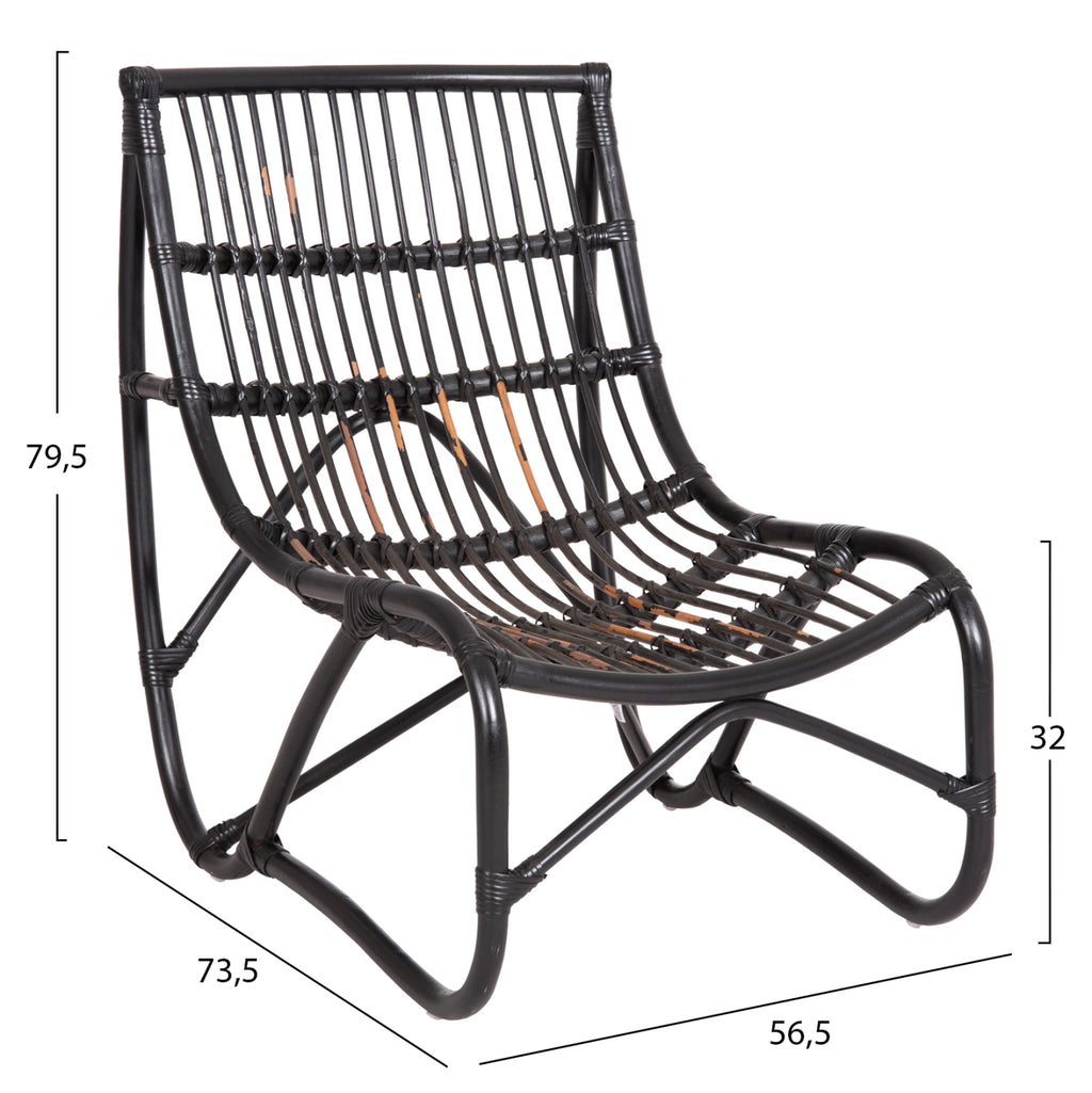 Външното кресло GRINN е впечатляващо и определено ще остави своя отпечатък. С красив дизайн без рамена, той се състои от единична основа-облегалка-рамка на седалката с пръчки от естествен ратан в ЧЕРЕН цвят. Не идва с възглавници. РАЗМЕРИ: 56.5x73.5x79.5H см. Размери на седалката: 56.5x52 см. Размери на гърба: 56.5х47см. Височина на седалката: 32см. Височина на крака: 34 см. Разстояние между краката: 52см. Височина на крачола отзад: 51 см. МАТЕРИАЛИ НА ИЗРАБОТКА: Цялото кресло е изработено от естествен ратан. Ратанът е най-добрият и използван естествен материал за производство на мебели. Ратанът, отглеждан в Северна Азия, е най-висококачественият и най-издръжлив материал от подобни, отглеждани в други региони. Ратанът е естествено растящ вид лоза, който е роден в тропическите райони на Австралия, Азия и Африка. С повече от 600 различни вида РАТАНА може да бъде разграничен като силно влакнесто растение, подобно на бамбука и използвано за мебели, защото е лек, издръжлив, гъвкав и привлекателен. ПОДДРЪЖКА: Благодарение на издръжливостта на РАТАНА поддръжката на фотьойла е лесна. Освен редовното почистване от прах, можете да го избършете с влажна кърпа. НЕ използваме препарати, белина и лакове. Ако все пак се налага използването на перилен препарат, тогава използваме мек сапун с топла вода. НЕ използваме машина под налягане или маркуч с налягане, защото това ще повреди влакната. ** Цветопредаването на продукта може леко да се различава от неговото фотографско представяне на вашия екран. ***Продукта е втори клас, тъй като както се вижда на снимките черният цвят е "избухнал" на места.