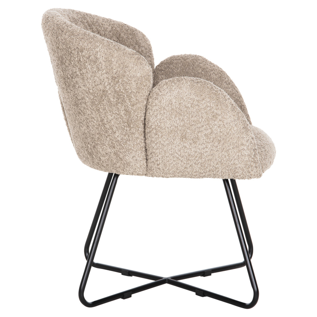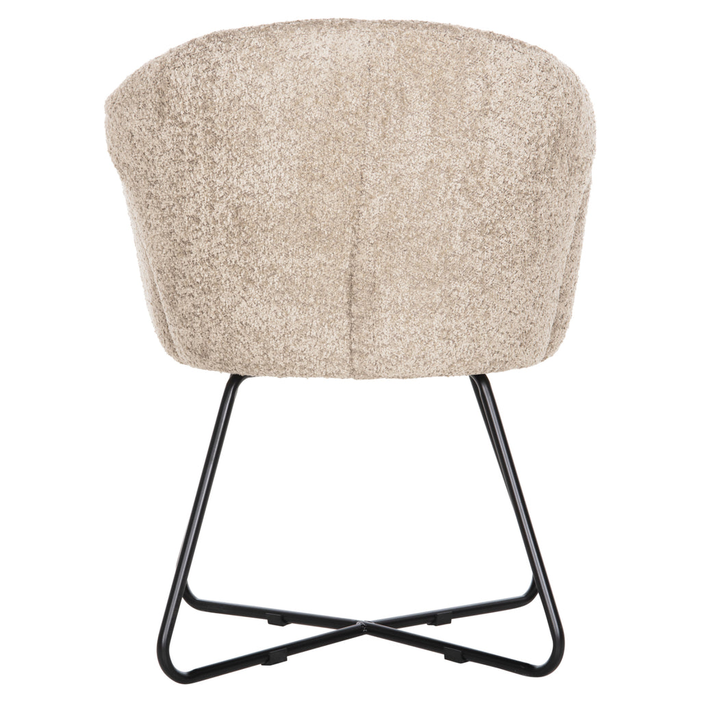 Кресло HARNIS е модерно и удобно. Доминиращият цвят е БЕЖОВ, като вместо крачета има основа в кръстосано подреждане и черен цвят. Тапицерията на фотьойла е изработена от топла дамаска BOUQUEL, която ще придаде различен вид на вашето пространство. Това е красиво предложение, което ще пасне почти навсякъде! РАЗМЕРИ: 59.5х64х77 см. Височина на седалката: 42 см. Височина на ръцете: 62 см. Размери на седалката: 44х50 см. Размери на гърба: 44х36см. Разстояние между краката: 47-51x47-51 см. Височина на крака: 37 см. Височина на крака отзад: 47-51 см. МАТЕРИАЛИ НА ИЗРАБОТКА: Краката на фотьойла са метални с електростатична боя. Електростатичното боядисване е процес на сухо покритие, използван като метално покритие. Електростатичното боядисване е нанасяне на сух прах чрез електростатичен процес, който след това се „свързва“ към метала чрез топлина. Подходящ е както за вътрешни, така и за външни приложения. Подплатата е изработена изцяло от дамаска BOUCLÉ. Всяка тъкан, която има извиване на възел, се нарича букле. Изработено е от почти всички суровини (въпреки че обикновено е синтетично) със специални възли или силно усукани конци, така че да има къдрава повърхност. Не се мачка и може да бъде изчистена, меланжирана, карирана или туид. ПОДДРЪЖКА: Платът от букле можете да избършете с прахосмукачка, а при петна използвайте леко влажна кърпа. ПРЕДИМСТВА: •Здрава конструкция •Модерен дизайн •Отличителна визия с топлата и мека материя от букле •Невероятна стойност за парите •Лесен за сглобяване с инструкции *Продуктът се доставя във фабрична опаковка несглобен ** Цветопредаването на продукта може леко да се различава от фотографското представяне на вашия екран.
