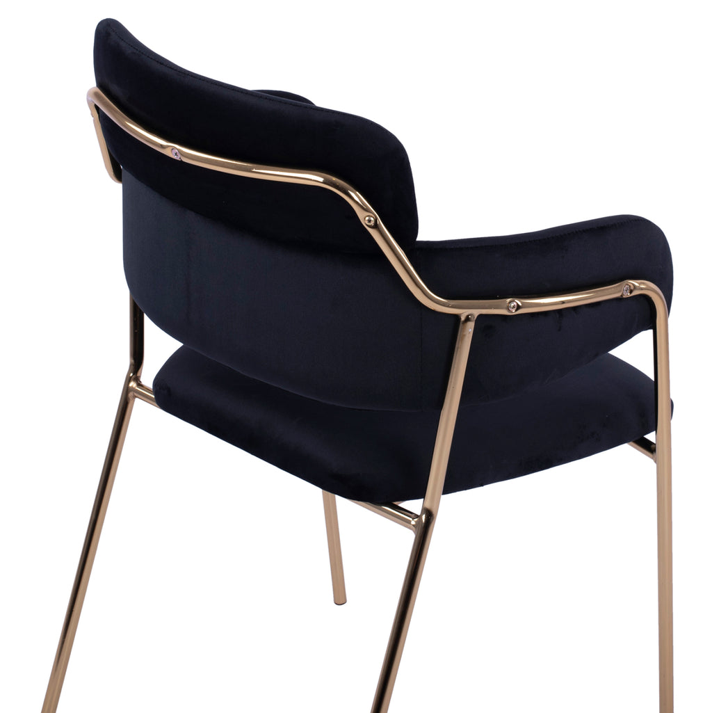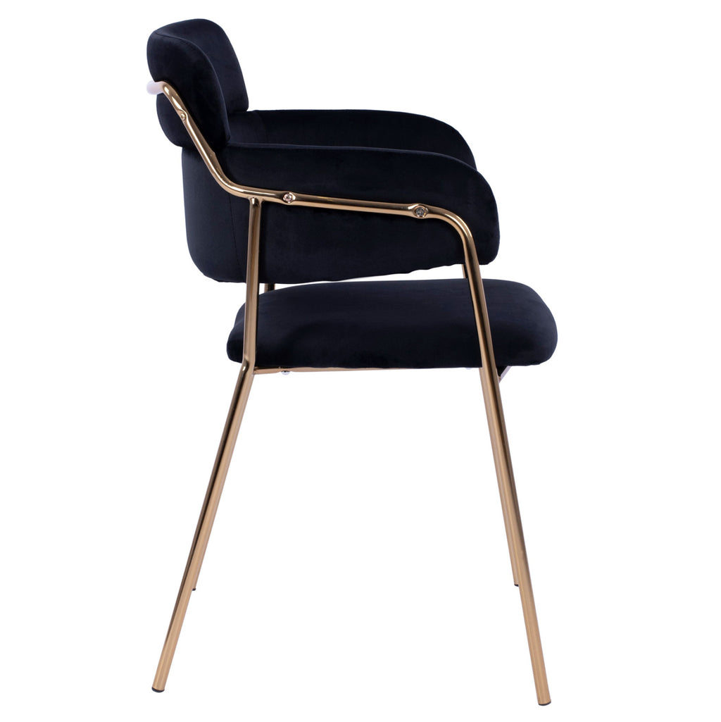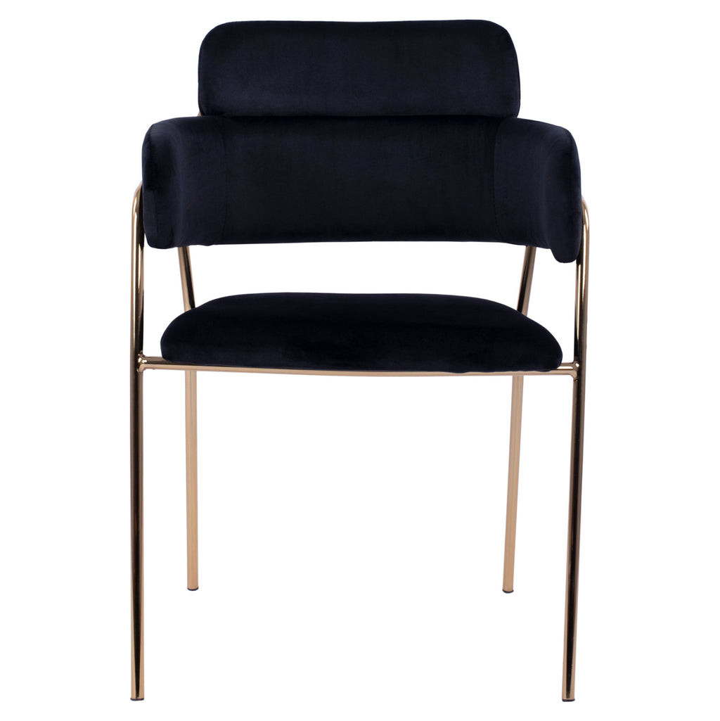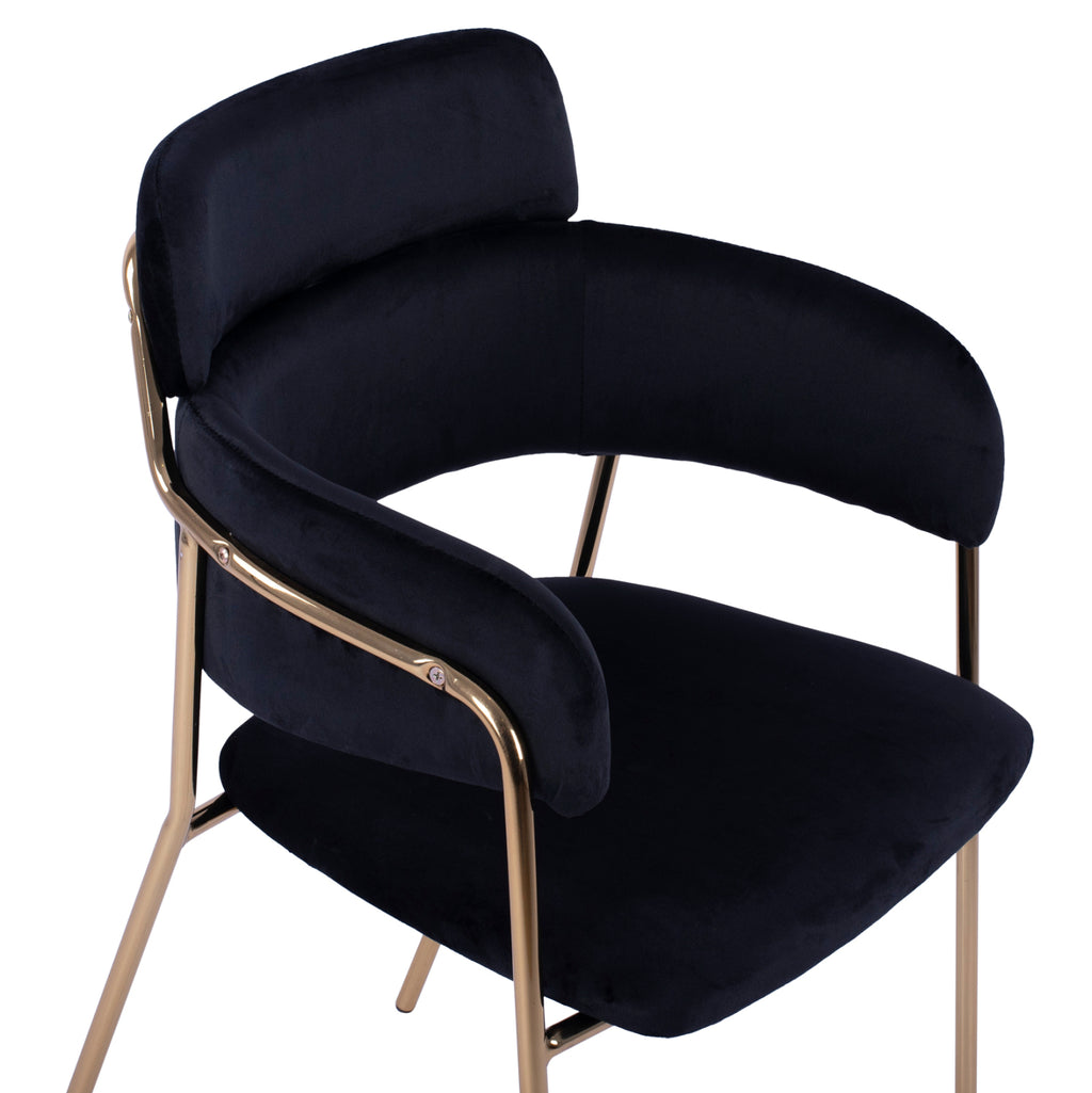 Кресло KELSO е въплъщение на луксозния дизайн и комфорт. Тапицирано с висококачествена кадифена дамаска в дълбок черен нюанс, то излъчва изтънченост и класа. Позлатените метални крака добавят нотка на гламур и създават впечатляващ контраст.