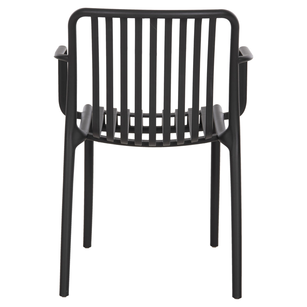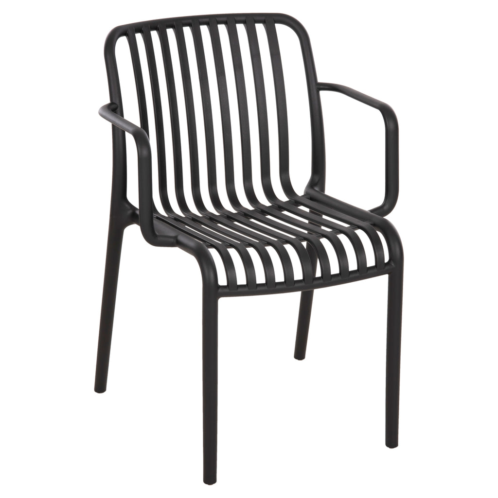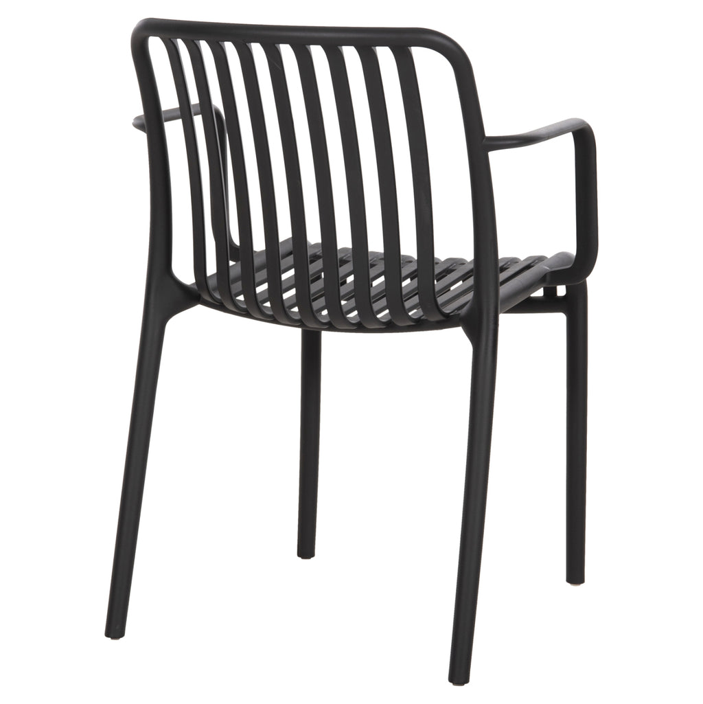 Кресло Колин е класически външен фотьойл, който ще задоволи всяка ваша нужда във вашия двор или балкон. Той е с високо качество и елегантен външен вид, а извитата седалка отпред, както и сравнително високите подлакътници го правят много удобен. Цялото кресло е изработено от полипропиленови греди в ЧЕРЕН цвят. Той е стифиращ, лек и удобен, идеален избор и за професионална употреба, като например в кетъринг и др.