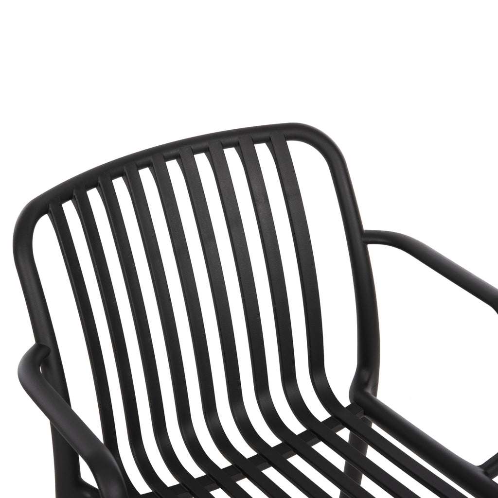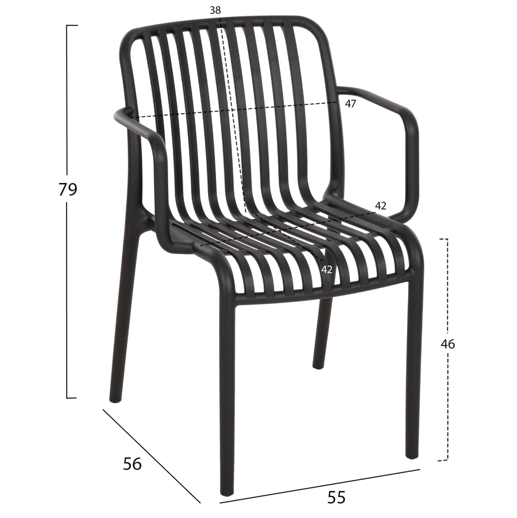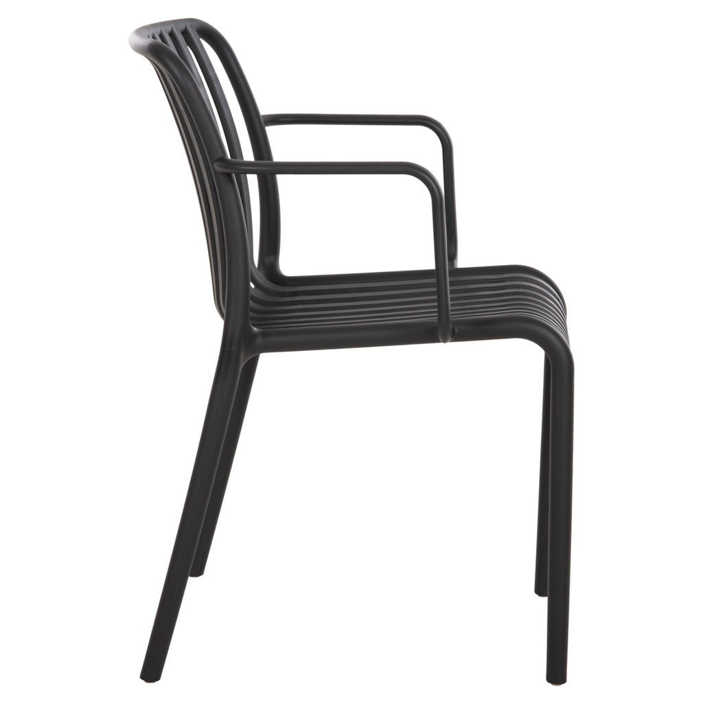 Кресло Колин е класически външен фотьойл, който ще задоволи всяка ваша нужда във вашия двор или балкон. Той е с високо качество и елегантен външен вид, а извитата седалка отпред, както и сравнително високите подлакътници го правят много удобен. Цялото кресло е изработено от полипропиленови греди в ЧЕРЕН цвят. Той е стифиращ, лек и удобен, идеален избор и за професионална употреба, като например в кетъринг и др.