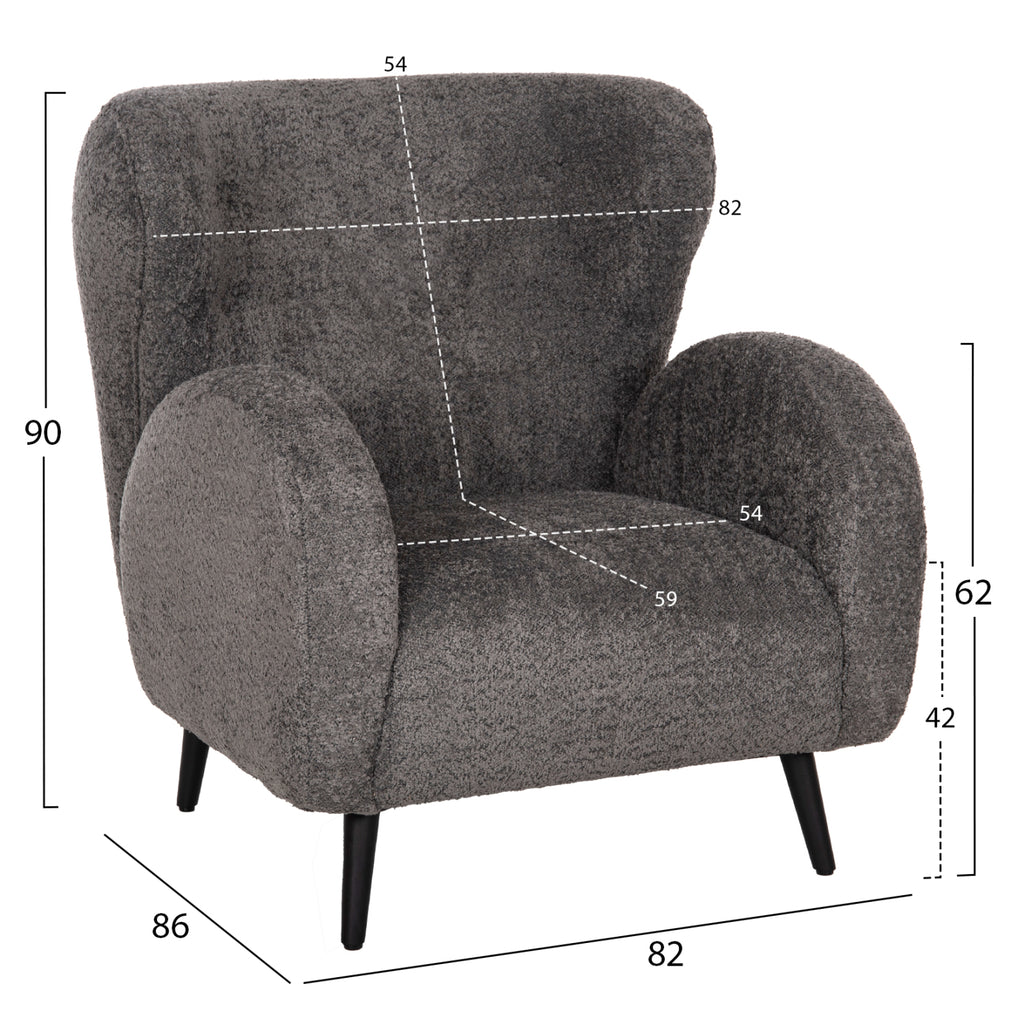 Представяме ви фотьойл-бергеър KRYLY в СИВО с черни крака, създаващи мек двутонен ефект. Високата облегалка и почти „кофообразният“ дизайн придават на фотьойла специална красота в комбинация, разбира се, с висококачествената букле материя. Седалката е удобна, отговаряща на характера на фотьойла, а характеристиката на този фотьойл са силните му извивки както на облегалката, така и на подлакътниците. Той е модерен, съчетаващ стил и комфорт и можете да го поставите до камината, на прозорец или дори в спалнята си и да се оставите да се увлечете от неговата „прегръдка“. РАЗМЕРИ: 83x87x89H см. МАТЕРИАЛИ ЗА ИЗРАБОТКА: Дървената рамка на фотьойла е изключително здрава и издръжлива. Краката са дървени, което им придава устойчивост на тегло и време, а в долната част имат пластмасови капачки, за да предпазят пода и самите крака от влага. „Пълнежите“ на бергера, както на облегалката, така и на седалката, са изработени от средно твърди дунапренени материали, които предлагат голям комфорт и по-добра опора за тялото. Цялата тапицерия на дивана бергеър е изработена от висококачествен плат BOUQUET. Буке е всеки плат, който има къдрава тъкан с възли. Изработва се от почти всички суровини (въпреки че обикновено е синтетична) със специални възли или силно усукани прежди, така че да има къдрава повърхност. Не се мачка и може да бъде едноцветен, меланж, кариран или туид. ПОДДРЪЖКА: Можете да почистите плата букле с прахосмукачка, а в случай на петна, използвайте леко влажна кърпа. ПРЕДИМСТВА: • Здрава конструкция • Естетическо превъзходство с топлия плат букле • Високи крака *** Цветопредаването на продукта може леко да се различава от фотографското му представяне на вашия екран. Продуктът се доставя несглобен във фабрична опаковка.