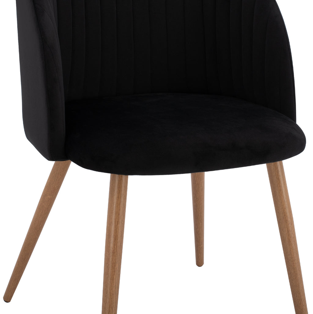 LEAH стол с подлакътници, тапициран с черно кадифе. Краката са метални, боядисани, за да придадат вид на дърво. Нотка елегантност, съчетана с безброй цветови вариации и форми. Леко лъскавата материя с нейния неповторим вид и усещане не без причина е една от живите тенденции par excellence. Плюшеното покритие прави всичко различно! Размери: 53х57х81см. Височина на седалката: 48см. Размери на седалката: 44-46x46 см. Височина на ръцете: 75 см. Размери на ръката: 25х31 см. Разстояние между краката: 47х53 см. Височина на крака: 43 см. Височина на гърба: 38см.