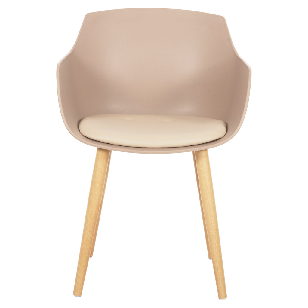 Модерен полипропиленов стол LUCIE с метални крака и възглавница, в уникален дизайн, който ще подчертае всеки ъгъл на вашия дом или бизнес пространство. Цвят: КАПУЧИНО-ЕСТЕСТВЕНО ДЪРВО Размери: 56х55,5х80Н см. Размери на седалката: 43х43 см. Размери на гърба: 48х34см. Височина на ръцете: 66,5 см. Височина на седалката: 49 см. Височина на крака: 44 см. Разстояние между краката: 45х43,5 см. ВНИМАНИЕ: Продуктът се предлага разглобен в опаковка от два броя и се продава по 2 броя.