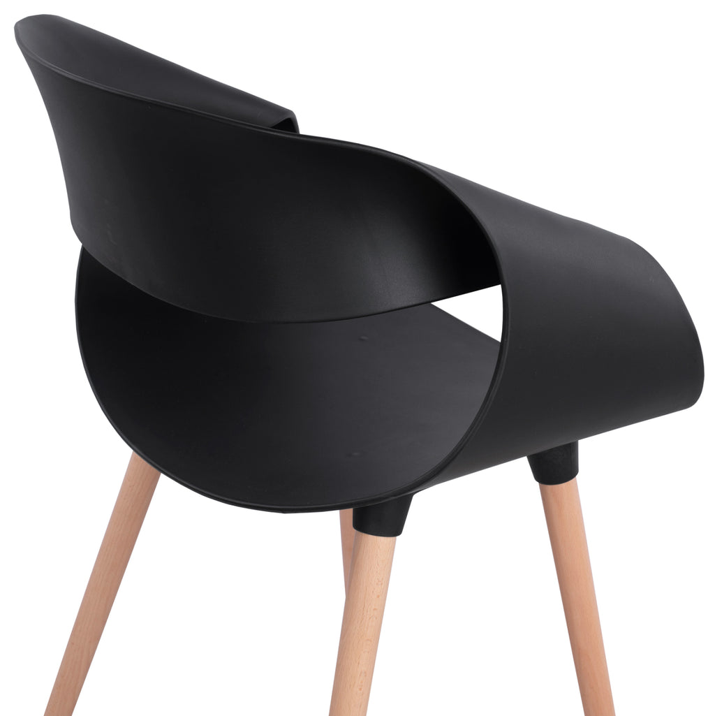 Фотьойл изработен от матиран полипропилен в черен нюанс. С крака от масивно буково дърво и седалка от матов полипропилен, столът е на върха на днешния интериорен дизайн и, разбира се, на върха на вашите собствени предпочитания. Това е абсолютната опция, която трябва да имате. Размери: 59x53x80H см. Височина на седалката: 46 см. Височина на ръцете: 69 см. Размери на седалката: 50х44 см. Фотьойлът се предлага в комплект.