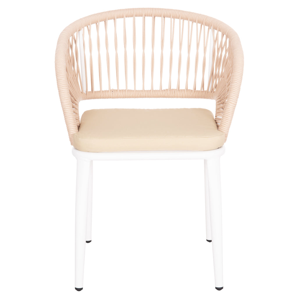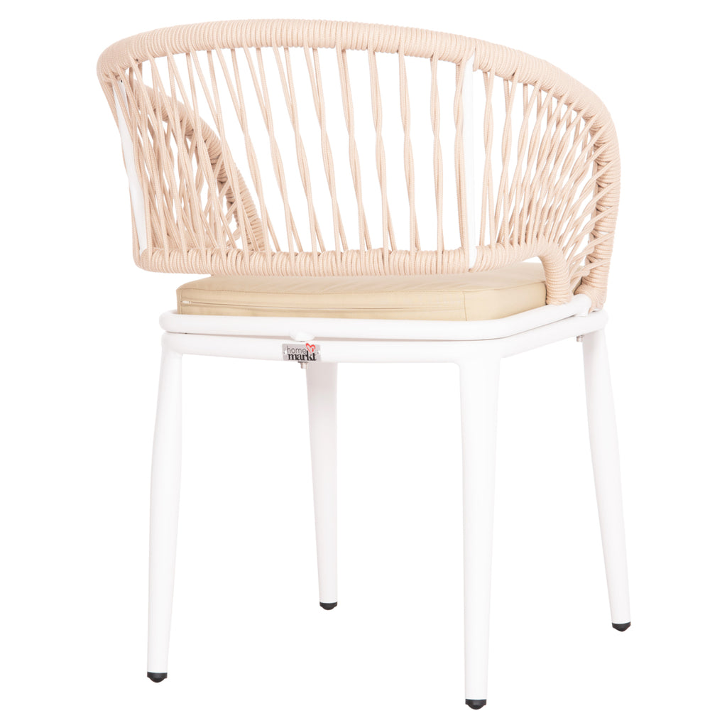 Фотьойлът MAGNET е проектиран да прегръща тялото благодарение на полукръглата облегалка, покрита с териленово полиестерно въже в БЕЖОВ цвят. Възглавницата на седалката я прави комфортна и удобна. Рамката е изработена от алуминий в БЯЛ цвят. Също така, фактът, че може да се подрежда една върху друга, го прави особено практичен, тъй като можете да го съхранявате на възможно най-малко място. РАЗМЕРИ: 59x61x81.5H см. Размери на седалката: 43х49 см. Размери на гърба: 42х34см. Височина на ръцете: 74 см. Височина на седалката: 48см. Височина на крака: 40 см. Разстояние на краката: 47.5-43x52-47.5см. Размери на алуминия: Φ19x1.2mm-----Φ38x1.5mm Размер на териленовото въже: 6mm МАТЕРИАЛИ НА КОНСТРУКЦИЯТА: Рамката на фотьойла е изработена от алуминий, боядисан с електростатична боя. Алуминият е „зелен“ материал, който може да се рециклира неограничено време, като запазва характеристиките си без влошаване на качеството. По своята същност е устойчив на корозия. Информация: Електростатичното боядисване е процес на сухо покритие, използван като метално покритие. Електростатичното боядисване е нанасяне на сух прах чрез електростатичен процес, който след това се „свързва“ към метала чрез топлина. Въжето е полиестерно и е особено леко, но и издръжливо. ПОДДРЪЖКА: Освен редовно почистване от прах, можете да го забърсвате с влажна кърпа. ** Цветопредаването на продукта може леко да се различава от неговото фотографско представяне на вашия екран.