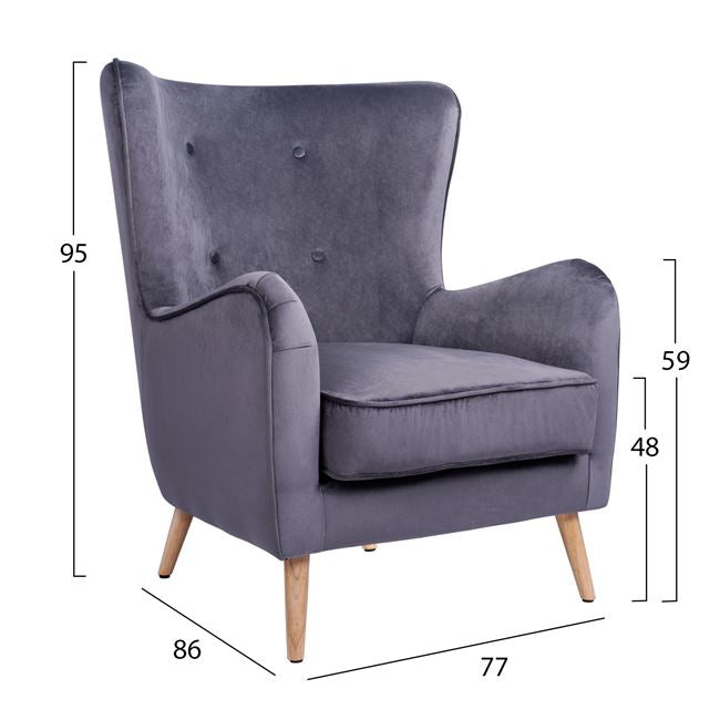 Представяме ви кресло-берзера MARTA, в неутрален СИВ цвят с крака в естествен дървесен цвят, създаващи мека двуцветност. Високата и извита облегалка с 4 копчета придава особена красота на фотьойла в комбинация, разбира се, с висококачествената кадифена дамаска. Възглавницата на седалката е дебела и удобна, отговаряща на характера на фотьойла, а характеристиката на този фотьойл са силните му извивки както високо на облегалката, така и на ръцете. Той е модерен, съчетаващ стил и комфорт и можете да го поставите до камината, на прозорец или дори в спалнята си и да се оставите да бъдете прегърнати от него. Мини история: Историята на Bergere (вижте bergere) започва някъде през 1720 г., в салоните на двореца Версай по времето на Луи XV, където се смяташе за седалище на благородството и висшата класа. Конструкцията му от специално дърво, съчетано с луксозните тъкани на времето, му придаваше усещането за трон. От ранните си години той се смяташе за кралицата на местата за сядане, както заради уединението, което предлагаше с отворените си ръце, висока облегалка и обърнати страни, така и заради доминирането си в пространството като декоративен елемент. Фотьойлът Berzera променя външния си вид през годините (в зависимост от сезона и модата). Облечена в материи на цветя, кожа, много различни шарки със специфични текстури, дори Честърфийлд. През годините може би сме виждали вариации на дизайна на bergere, ръцете бяха облечени, гърбът се повдигна, размерът на възглавницата се промени, но основната идея на голямото, удобно кресло никога не се е променила. Едно голямо удобно кресло често е по-добро от цял диван. РАЗМЕРИ: 77x86x95H см. Височина на седалката: 48см. Височина на ръцете: 59см. Размери на седалката: 52х60 см. Дебелина на възглавницата: 13см. МАТЕРИАЛИ НА КОНСТРУКЦИЯТА: Дървената рамка на фотьойла е изключително здрава и издръжлива. Краката са дървени, което също дава устойчивост на тежест и време, а в долната си част имат пластмасови капачки за защита на пода и самите крака от влага. „Пълнежите“ на бергерето, както на гърба, така и на възглавницата на седалката, са изработени от дунапрен със средна твърдост, който предлага голям комфорт и по-добра опора на тялото. Цялата подплата на бергера е изработена от висококачествена кадифена материя, придаваща атрактивен вид и изтънчен чар на декорацията на хола. Кадифето е материята, която не оставя никого равнодушен! Независимо дали покрива малки или големи повърхности, няма как да не усети присъствието си в пространството и да привлече вниманието. Кадифето е плат, който е бил особено обичан от кралете и императорите от миналите векове, в резултат на което се е превърнал в синоним на лукс и блясък. Той е залял витрините на най-големите магазини и е един от най-любимите избори на най-известните декоратори в света. Това е мека, спокойна, възхитителна и елегантна материя, на която е невъзможно да се устои. Положителното е, че лесно се хармонизира с всякакъв вид декорация, придавайки на пространството финес и елегантност. Мини история: Причината кадифето да е било обект само на очите на крале и императори, е фактът, че е било направено предимно от копринени влакна и всъщност с много специална обработка, която изисква много време и специален стан. За щастие днес нещата са се променили и тази прекрасна материя е достъпна за всеки. ПОДДРЪЖКА: Б