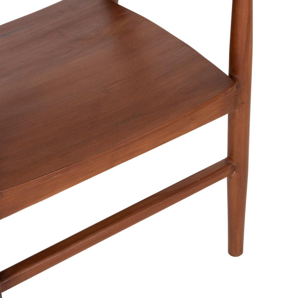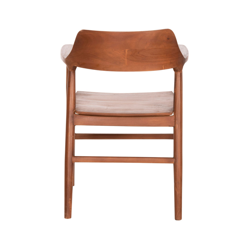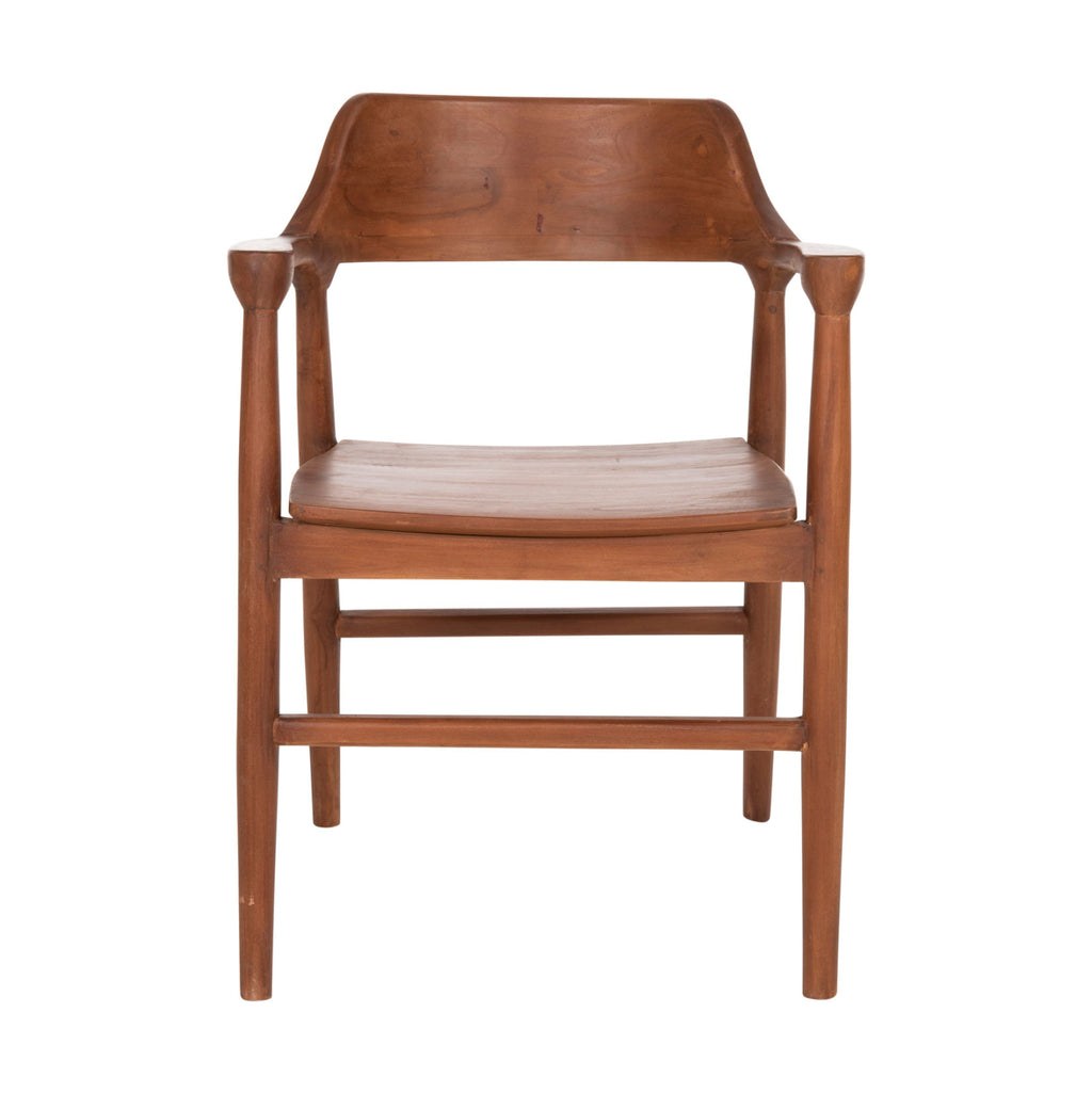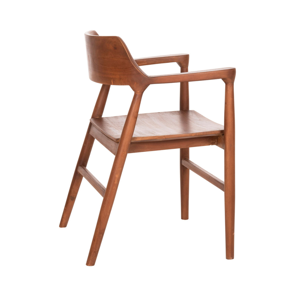 Трапезният стол NIONI е изцяло изработен от качествена дървесина. Дизайнерските линии на стола са елегантни и фокусирани върху комфорта на потребителя, като типичен пример са високите подлакътници на стола. Дървесината е в цвят ОРЕХ, който може лесно да се комбинира с различни декоративни шарки. Просто го комбинирате с масата по ваш избор и създавате комплекта, който винаги сте искали. РАЗМЕРИ: 57x53x77Y см. Височина на седалката: 45 см. Височина на подлакътниците: 68 см. Размери на седалката: 46x43 см. Размери на облегалката: 40x17-35 см. Разстояние между краката: 48x48 см. МАТЕРИАЛИ ЗА КОНСТРУКЦИЯ: Рамката на стола е изработена от висококачествена масивна дървесина TEAK. Когато говорим за масивна дървесина, имаме предвид дървесина, която е направена изцяло от ствола на дърво. Масивната дървесина е най-скъпият избор от дървесни видове, но се откроява със своята вечна естетика. Тикът е най-популярният вид твърда дървесина. Той е от жълт до тъмнокафяв цвят, изключително тежък, много издръжлив, устойчив на атмосферни влияния, деформация и не гние. Често дървесните влакна са интензивни и прави. Използва се за различни интериорни и екстериорни конструкции. ПОДДРЪЖКА: Фактът, че тикът е част от твърдите дървесини, го прави много лесен за поддръжка. Всичко, от което се нуждае, е почистване с прах и, когато е необходимо, с влажна кърпа. ПРЕДИМСТВА: • Здрава конструкция • Естетически красив фотьойл, който ще пасне навсякъде. • Съотношение цена-качество • Доставя се готов за употреба