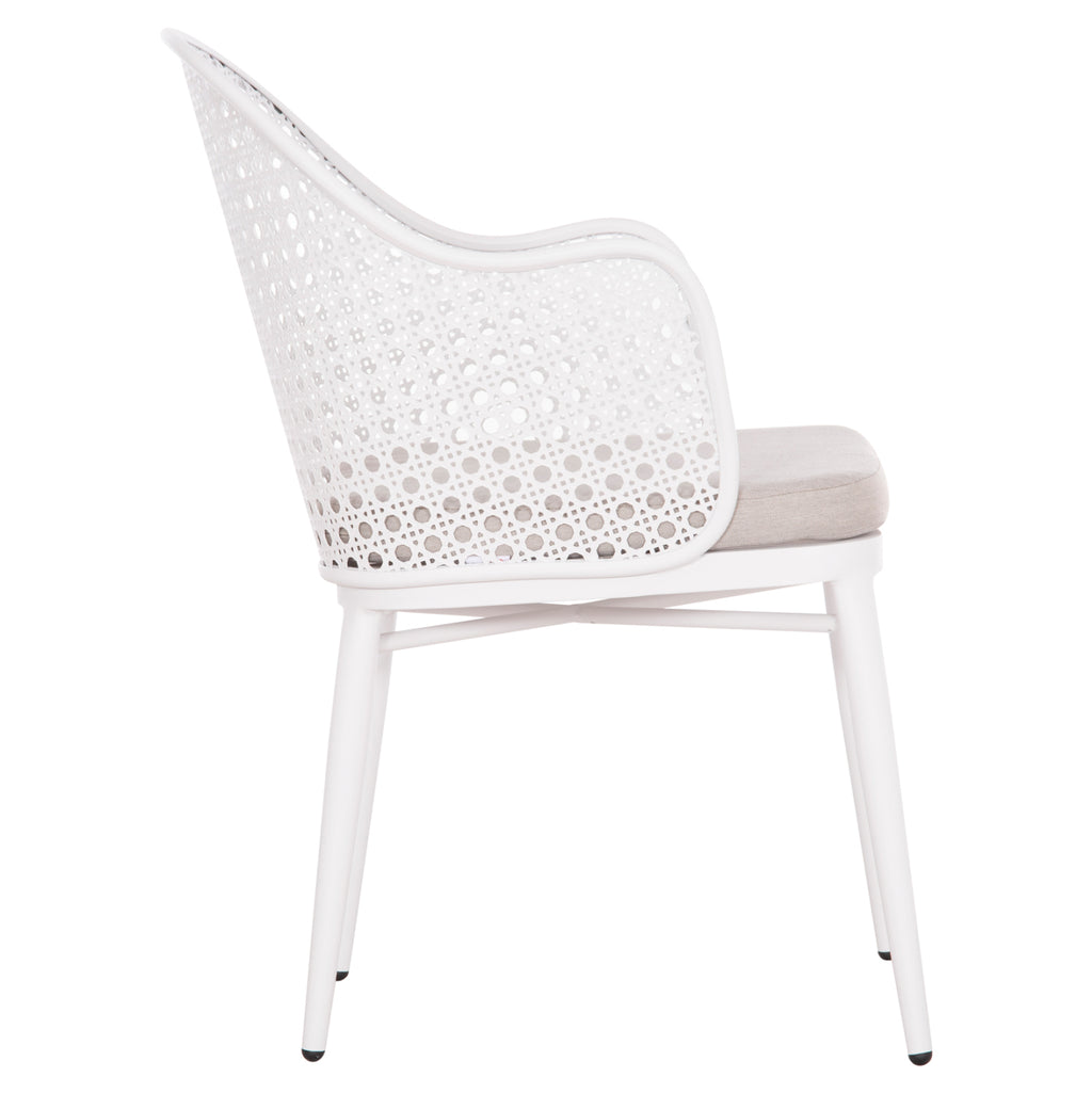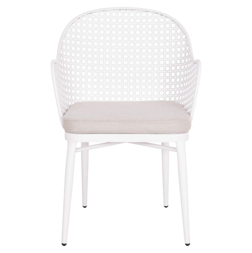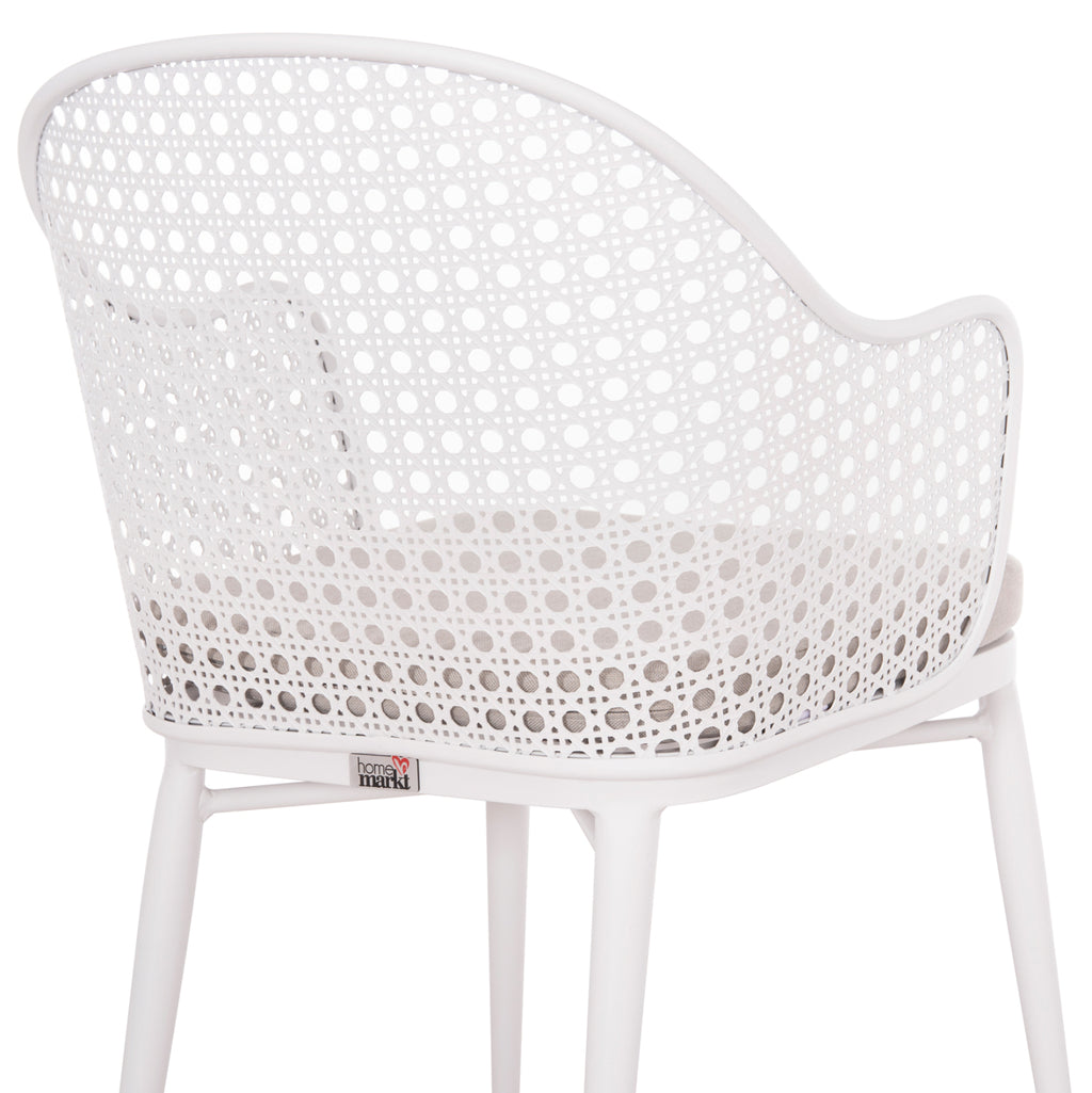 Алуминиевото кресло OREGO е много специално кресло за вашето външно пространство. Гърбът е полукръгъл и "перфориран", а възглавницата, която също е с цип е в СВЕТЛО СИВО. Рамката на фотьойла е в ярко БЯЛ цвят. РАЗМЕРИ: 56x59x81H см. Размери на седалката: 48х47 см. Размери на гърба: 48х38см. Височина на ръцете: 65 см. Височина на седалката: 47 см. Височина на крака: 38,5 см. Разстояние на краката: 46-42.5x50-46см. Дебелина на възглавницата: 5см. изработен от полиестерен материал Алуминиеви спецификации: Φ32x1.2mm—Φ19x1.2mm КОНСТРУКТИВНИ МАТЕРИАЛИ: Цялото кресло (дори "ситото") е изработено от алуминий, боядисан с електростатична боя. Информация: Електростатичното боядисване е процес на сухо покритие, използван като метално покритие. Електростатичното боядисване е нанасяне на сух прах чрез електростатичен процес, който след това се „свързва“ към метала чрез топлина. Краката в долната част имат пластмасови капачки за защита на пода. ПОДДРЪЖКА: Освен редовно почистване от прах, можете да го забърсвате с влажна кърпа. ** Цветопредаването на продукта може леко да се различава от неговото фотографско представяне на вашия екран.