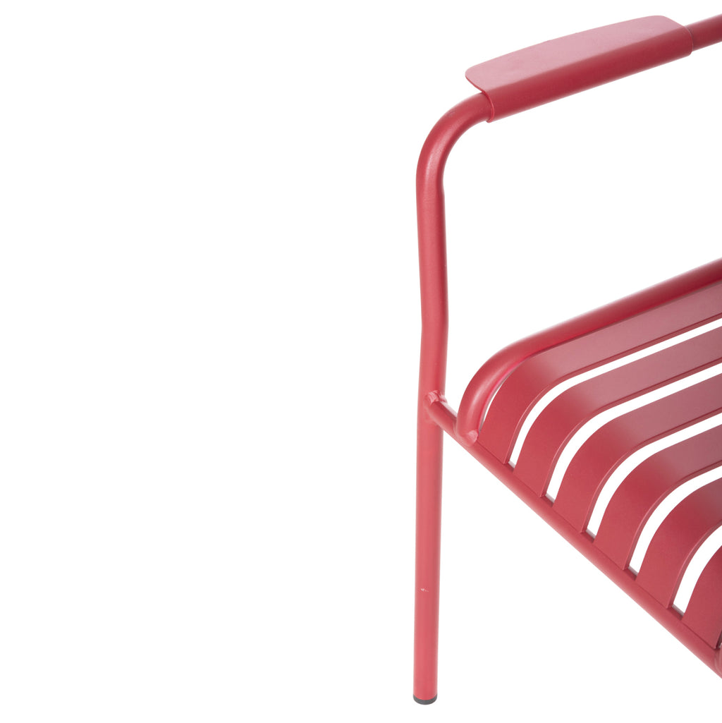 Кресло RACHEL е изработено изцяло от алуминий в ЧЕРВЕН цвят. От гледна точка на дизайна, той е семпъл с красиви извивки и специална конструкция на ръцете за по-голям комфорт, а фактът, че може да се подрежда, го прави особено практичен, тъй като можете да го съхранявате на възможно най-малко място. РАЗМЕРИ: 63x58x85H см. Размери на седалката: 38х42 см. Размери на гърба: 44.5х45см. Височина на ръцете: 63,5 см. Височина на седалката: 44,5 см. Височина на крака: 35 см. Разстояние на краката: 48-53x52-56 см. Височина на крака отзад: 43-47.5см. Размери на алуминиевата рамка: Φ25mm x T1.5mm Размери на алуминия на облегалката: 40mm x 4mm КОНСТРУКТИВНИ МАТЕРИАЛИ: Цялото кресло е алуминиево боядисано с електростатична боя. Алуминият е „зелен“ и антикорозионен материал, който може да се рециклира неограничено време, като запазва характеристиките си без влошаване на качеството. Информация: Електростатичното боядисване е процес на сухо покритие, използван като метално покритие. Електростатичното боядисване е нанасяне на сух прах чрез електростатичен процес, който след това се „свързва“ към метала чрез топлина. ПОДДРЪЖКА: Благодарение на издръжливостта на строителните материали, поддръжката на фотьойла е лесна. Освен редовното почистване от прах, можете да го избършете с влажна кърпа. ПРЕДИМСТВА: •Здрава конструкция •Модерен дизайн •Лесен за поддръжка •МОЖЕ ДА СЕ СРЕЩА •Удивително съотношение цена-качество ** Цветопредаването на продукта може леко да се различава от фотографското представяне на вашия екран.