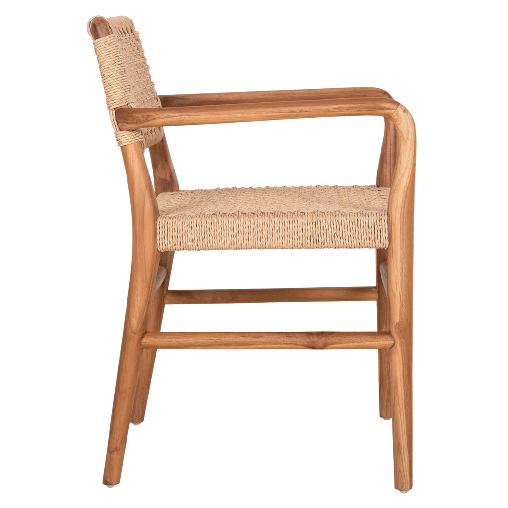 Кресло ROSCO, както за професионална, така и за домашна употреба, е с високо качество. Красивата му рамка е изработена от качествено дърво в НАТУРАЛЕН цвят, а средната височина на облегалката и широката седалка са изработени от майсторски изплетено VIRO въже. Дизайнерските линии на фотьойла са елегантни, като характерна особеност са заоблените ъгли на подлакътниците. Фотьойлът идеално ще допълни маса с подобно качество и естетика.