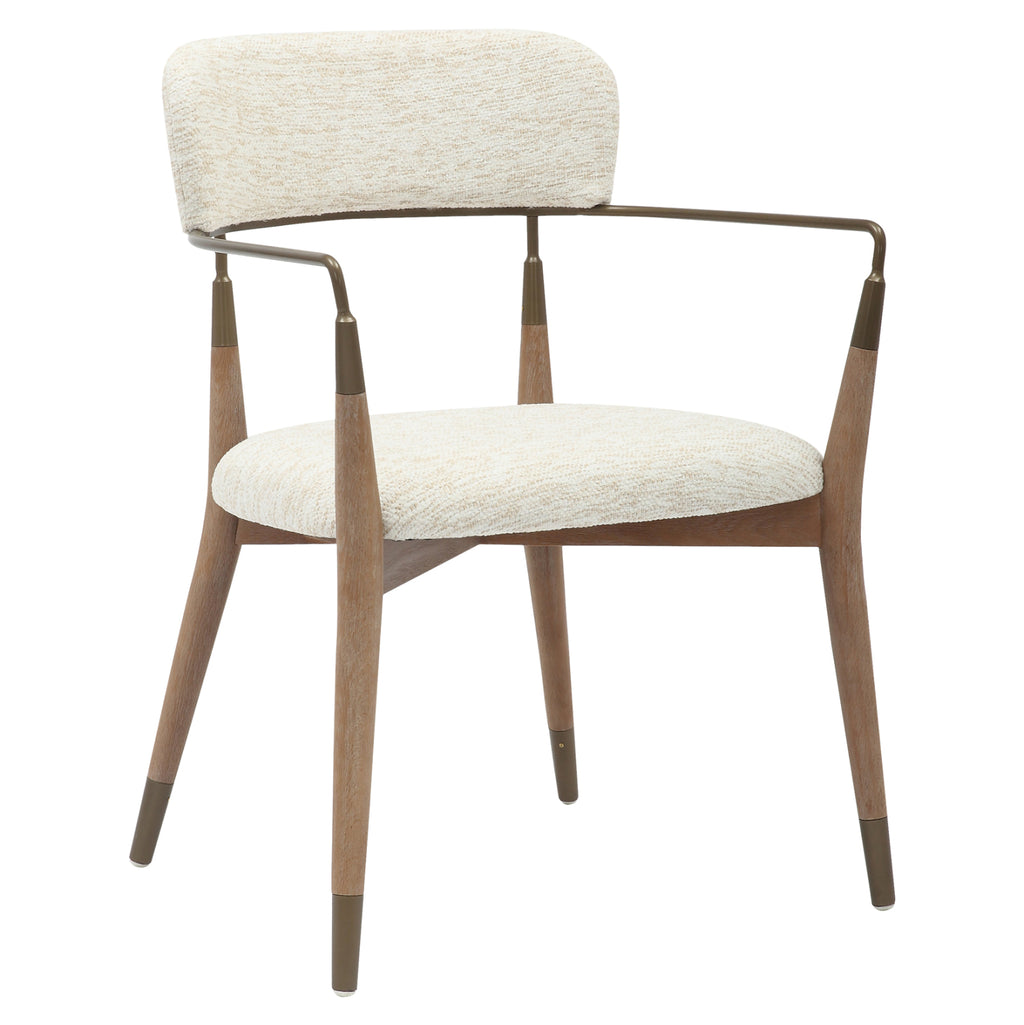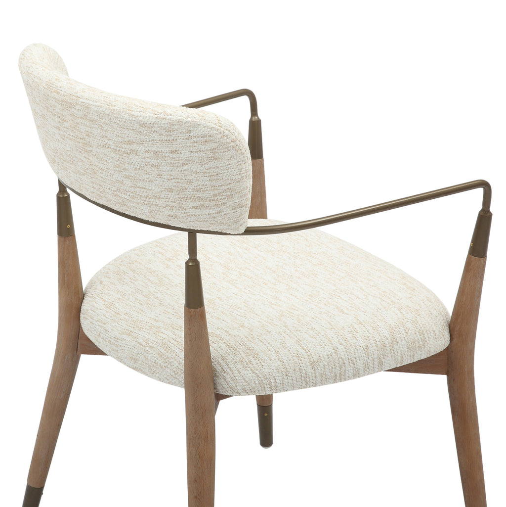 Трапезният фотьойл ROY е още едно ново попълнение в нашата гама. Има удобна и широка седалка и извита облегалка с материя ECROU, а подлакътниците са метални и високо в цвят АНТИЧНА МЕД. Краката и останалата част от рамката са изработени от букова дървесина в нюанс WHITEWASH. Ефектно кресло, което ще придаде престиж и висока естетика на вашата трапезария. РАЗМЕРИ: 51x48x77.5H см. Височина на седалката: 46 см. Височина на ръцете: 65 см. Размери на седалката: 48х47,5см. ПОДДРЪЖКА: Необходимо е само почистване от прах и при необходимост почистване с влажна кърпа. КАКВО НИ ХАРЕСВА: •Зашеметяваща комбинация от цветове и материали •Качествено покритие и сглобяване **Точното цветопредаване на продукта може леко да се различава от действителния продукт поради различни настройки на монитора. ***Този продукт е произведен по най-високи стандарти и е подходящ за професионална употреба.