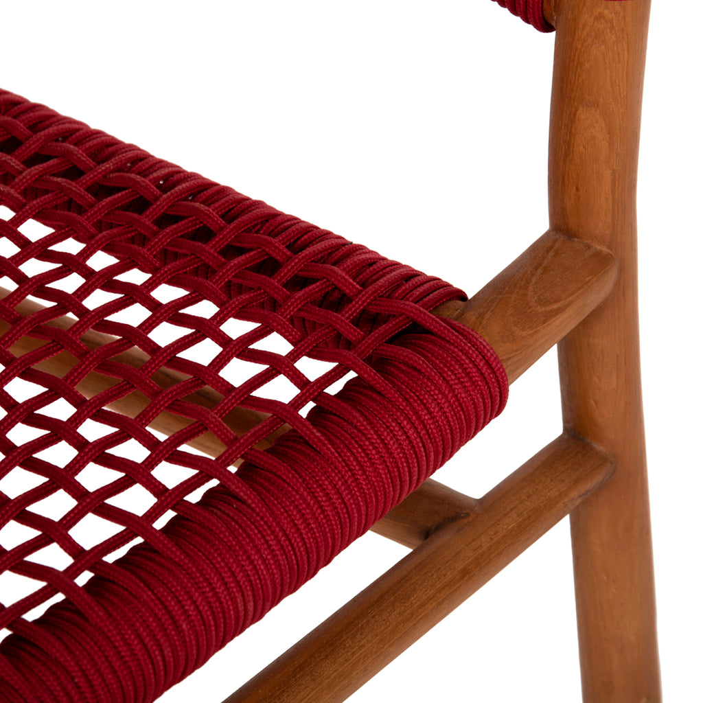 Креслото IRVING е кресло с несравнима красота. Красивата му рамка е изработена от качествена дървесина, а средновисоката полукръгла облегалка и широката седалка са изработени от майсторски изплетено въже с отлично качество в цвят БОРДО. Линиите на дизайна на фотьойла са елегантни и фокусирани върху комфорта на потребителя, а дървото е в ЕСТЕСТВЕН цвят, който лесно може да се комбинира с различни декоративни мотиви. Фотьойлът ще бъде център на интерес, където и да бъде поставен, но особено ако е съчетан с хубава маса за хранене. РАЗМЕРИ: 60x55x75Y см. Височина на седалката: 42 см. Височина на ръцете: 67см. Размери на седалката: 49х40 см. Размери на гърба: 47х17см. Разстояние между краката: 55х54 см. МАТЕРИАЛИ НА ИЗРАБОТКАТА: Рамката на фотьойла е изработена от висококачествено масивно тиково дърво. Когато говорим за масивно дърво, имаме предвид дървета, направени изцяло от ствола на дърво. Масивната дървесина е най-скъпият избор по отношение на дървесината, но се откроява със своята вечна естетика. Тикът е най-популярният вид твърда дървесина. Той е жълт до тъмно кафяв на цвят, изключително тежък, с висока якост, устойчив на атмосферни влияния, устойчив на стружки и не се разлага. Често водите на дървото му са силни и прави. Използва се за много интериорни конструкции. Седалката и облегалката са изработени от плетено въже. ПОДДРЪЖКА: Фактът, че ТИК е част от твърдата дървесина, го прави много лесен за поддръжка. Всичко, от което се нуждае, е почистване от прах и при необходимост почистване с влажна кърпа. ПРЕДИМСТВА: •Здрава конструкция •Естетично красиво кресло с класически дизайн, което ще пасне навсякъде. • Съотношение цена/качество • Доставя се готов за употреба