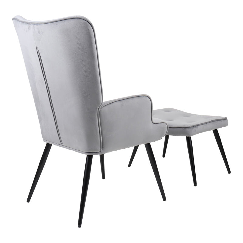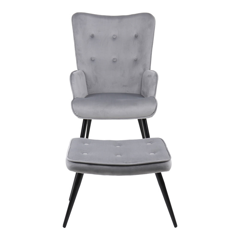 Този фотьойл с тахта представлява върхът на авангарден интериорен дизайн, хармонично съчетаващ издръжливи съвременни материали с лукс и ергономичност. Шедьовър на несравнима естетика, който ще издигне декора на вашето пространство. Перфектно подходящ за всеки модерен дом или професионална среда. Технически характеристики: Облегалката и седалката са изработени от подсилена дървена рамка с висока издръжливост и устойчивост на износване. Високата облегалка обхваща и следва гръбнака, осигурявайки лумбална опора. Отличава се с модерен извит дизайн с декоративни кабриолови акценти. Включва интегрирани подлакътници за отпускане на ръцете на потребителя. Поддържан от четири висококачествени черни метални крака, осигуряващи отлична устойчивост на тегло и дълготрайна издръжливост. Тапициран с дамаска с несравнимо качество, устойчива на износване и абразия. Предлага се в сив цвят. Включва табуретка/табуретка за крака. Размери на фотьойла: Дължина: 59 см Ширина: 67 см Височина: 94 см Височина на седалката: 43 см Дълбочина на седалката: 42 см Височина на подлакътника: 57 см Османски размери: Дължина: 51 см Ширина: 38 см Височина: 39 см Информация за материала: Кадифе: Кадифето е плат с къси, плътни влакна, обикновено направени от коприна, памук или синтетични материали. Има мека, гладка текстура и богат, лъскав външен вид. Характеризира се със своята плътност и мекота. Инструкции за поддръжка: Кадифе: Използвайте мека четка или вашата прахосмукачка и приставката с мекия косъм и с нежни движения почистете кадифето. В случай на петно, избършете с мека кърпа и топла вода, но търкайте петното много внимателно, без да натискате, защото ще попие още по-дълбоко. Изплакнете мястото обилно с чиста вода и оставете тъканта да изсъхне далеч от слънцето. Забележки: Продуктът се доставя разглобен, във фабрична опаковка, с подробно ръководство за монтаж. Цветът на продукта може леко да се различава от фотографското му представяне на вашия екран.