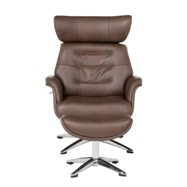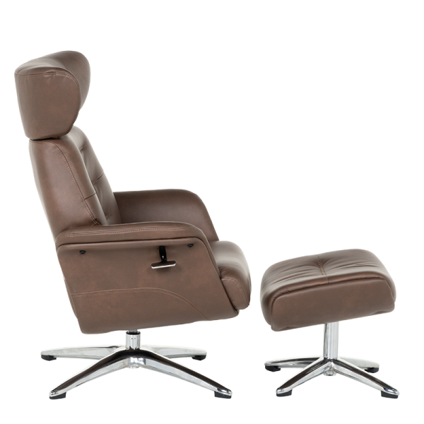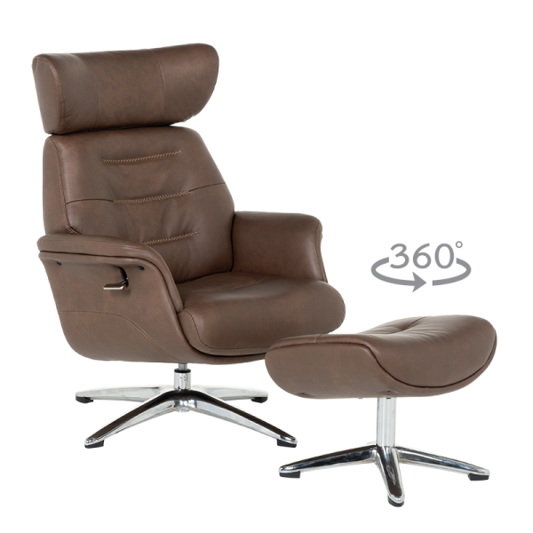 Кресло с табуретка TEDY с табуретка впечатлява с елегантен силует, висока облегалка и изключителен комфорт при всяка позиция. Разполага с функция за наклон на облегалката и плавно въртене на 360°, а меката тапицерия в съчетание с ергономичния дизайн създава усещане за пълна почивка. Масивната основа е изработена от хромиран метал, който придава модерен вид и гарантира стабилност.