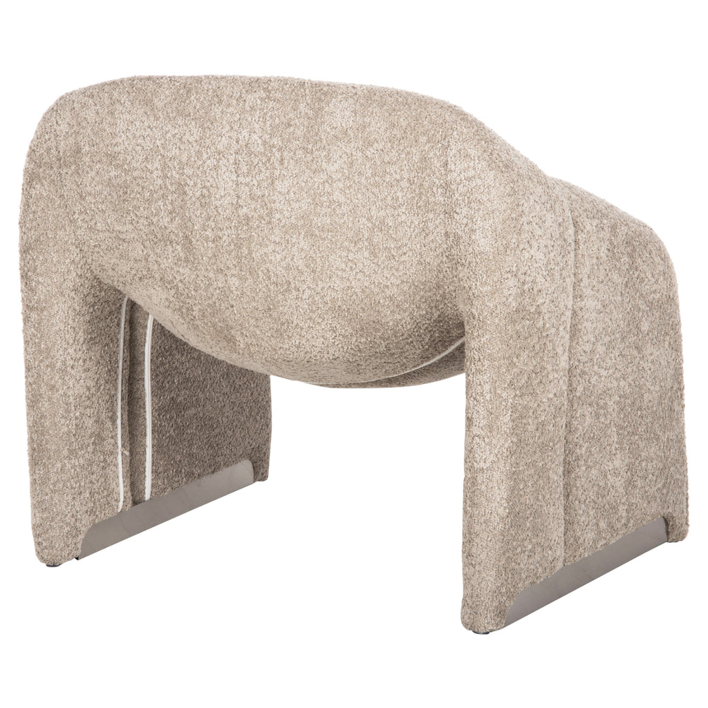 Вътрешният фотьойл SPINER в БЕЖОВ цвят със СРЕБЪРНИ основи е модерен и красив. Характеристиката, която отличава този фотьойл, са футуристичните извивки на рамката, които оформят удобната облегалка и подлакътници, а цялата конструкция създава впечатлението, че се носи в пространството. Фотьойл, който със сигурност ще привлече вниманието на всички. РАЗМЕРИ: 81x64x74В см. МАТЕРИАЛИ ЗА ИЗРАБОТКА: Тапицерията е изработена изцяло от висококачествен букле плат. Букле е всяка материя, която има къдрава плетка с възел. Изработва се от почти всички суровини (въпреки че обикновено е синтетична) със специални възлови нишки или силно усукани прежди, така че да има къдрава повърхност. Не се мачка и може да бъде едноцветен, меланж, кариран или туид. ПОДДРЪЖКА: Можете да почиствате букле плата с прахосмукачка, а в случай на петна, използвайте леко влажна кърпа. ПРЕДИМСТВА: • Здрава метална конструкция • Красив и модерен дизайн • Съотношение цена-качество • Готово за доставка ** Цветопредаването на продукта може леко да се различава от фотографското му представяне на вашия екран.