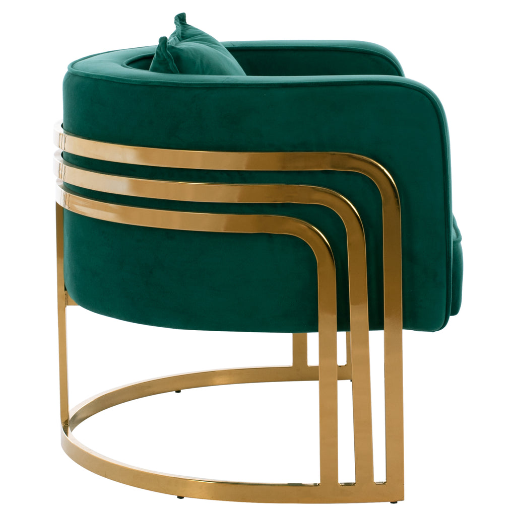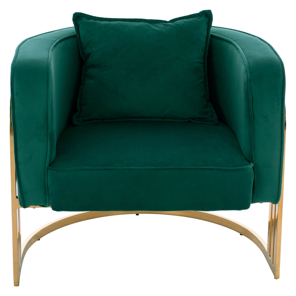 Кресло TIANA е красиво кресло в цвят кипарис и метална конструкция в цвят злато. Рамката завършва с краката на фотьойла, които са в полукръгла основа с 3 вертикални фиксирани върху металния полукръг. Стол, който придава нещо специално на всяко бизнес пространство. Отличителен, качествен и елегантен, той определено ще привлече окото. Облегалката е ниска, но е снабдена с мека възглавница, а целият фотьойл е тапициран с велурени шевове, което добавя към специалния характер на това кресло. РАЗМЕРИ: 80х70х68 см. Размери на седалката: 56x40-59 см. Размери на гърба: 52х27см. Височина на седалката: 42 см. Височина на ръцете: 69 см. МАТЕРИАЛИ НА КОНСТРУКЦИЯТА: Рамката на фотьойла е изработена от дърво, в резултат на което осигурява устойчивост на тежест, износване и съответно време. Краката са изработени от метал и в долната част на металния полукръг има пластмасови тапи за защита на всеки под. Пълнежът на облегалката и седалката се състои от афролекс, който е особено удобен за дълги часове на работа, докато придружаващата възглавница също е особено мека. Тапицерията на фотьойла е изцяло с кадифе. Кадифето е материята, която не оставя никого равнодушен! Независимо дали покрива малки или големи повърхности, няма как да не усети присъствието си в пространството и да привлече вниманието. Кадифето е плат, който е бил особено обичан от кралете и императорите от миналите векове, в резултат на което се е превърнал в синоним на лукс и блясък. Той е залял витрините на най-големите магазини и е един от най-любимите избори на най-известните декоратори в света. Това е мека, спокойна, възхитителна и елегантна материя, на която е невъзможно да се устои. Положителното е, че лесно се хармонизира с всякакъв вид декорация, придавайки на пространството финес и елегантност. ПОДДРЪЖКА: Разположението на външната рамка и металните крака не се нуждае от много поддръжка, освен минаване с влажна кърпа. За кадифето обаче истината е, че повечето хора избягват да купуват плюшени артикули, защото смятат, че лесно се поврежда и не се почиства. Това със сигурност е деликатна материя, която се нуждае от специални грижи, но която може да я запази непроменена в продължение на много години. За да поддържате плюша чист и пухкав е добре да го почиствате с прахосмукачка веднъж седмично. Прикрепете мека четка, задайте меката програма на вашата прахосмукачка и почистете цялата повърхност по посока на зърното. Ще видите, че веднага прахта ще бъде отстранена и купчината плат ще бъде като нова. Не поставяйте тежки предмети върху плюшеното кресло за дълго време, защото има риск да остави следа и да намали обема на купчината. В никакъв случай не трябва да търкате кадифена тъкан. Дори и да трябва да премахнете петно, не го търкайте. Навлажнете мека кърпа с вода и нанесете локално върху петното. За по-трудни петна потопете кърпата в разтвор на амоняк и вода (1/1), почистете петното и след това избършете със суха памучна кърпа в посока, обратна на косъма. Идеален избор за почистване на кадифе е и кожата (т.е. кърпите, с които сушим колата). И накрая, ако кадифето, което искате да почистите, е направено от коприна, тогава е най-добре да оставите експертите да го почистят и да посетите химическо чистене. ПРЕДИМСТВА: Здравата конструкция на фотьойла със златиста метална опора в комбинация с кипарисово кадифе го прави иде