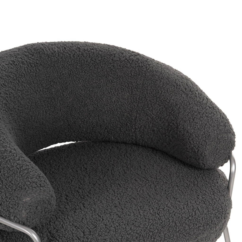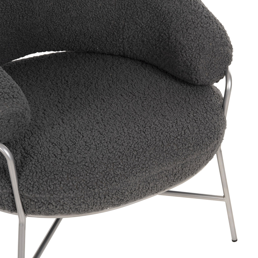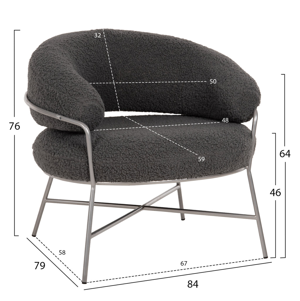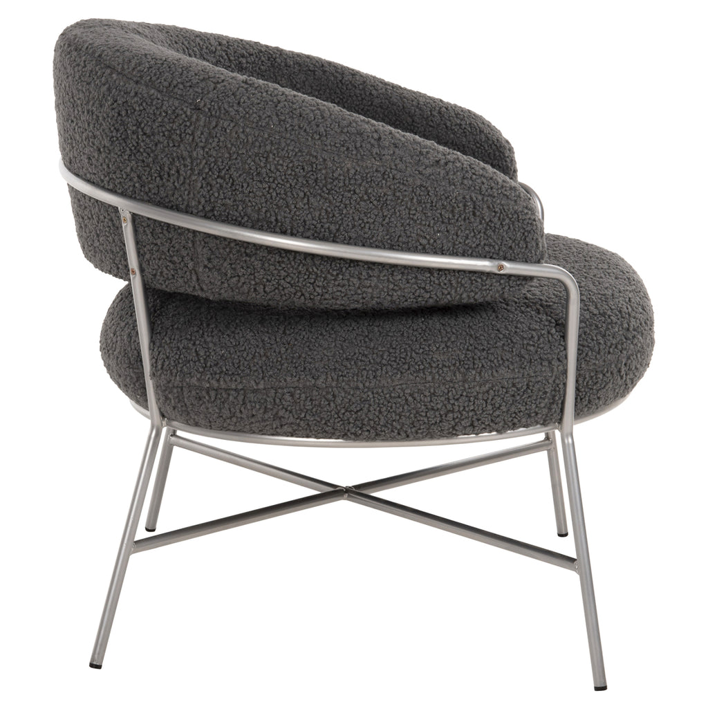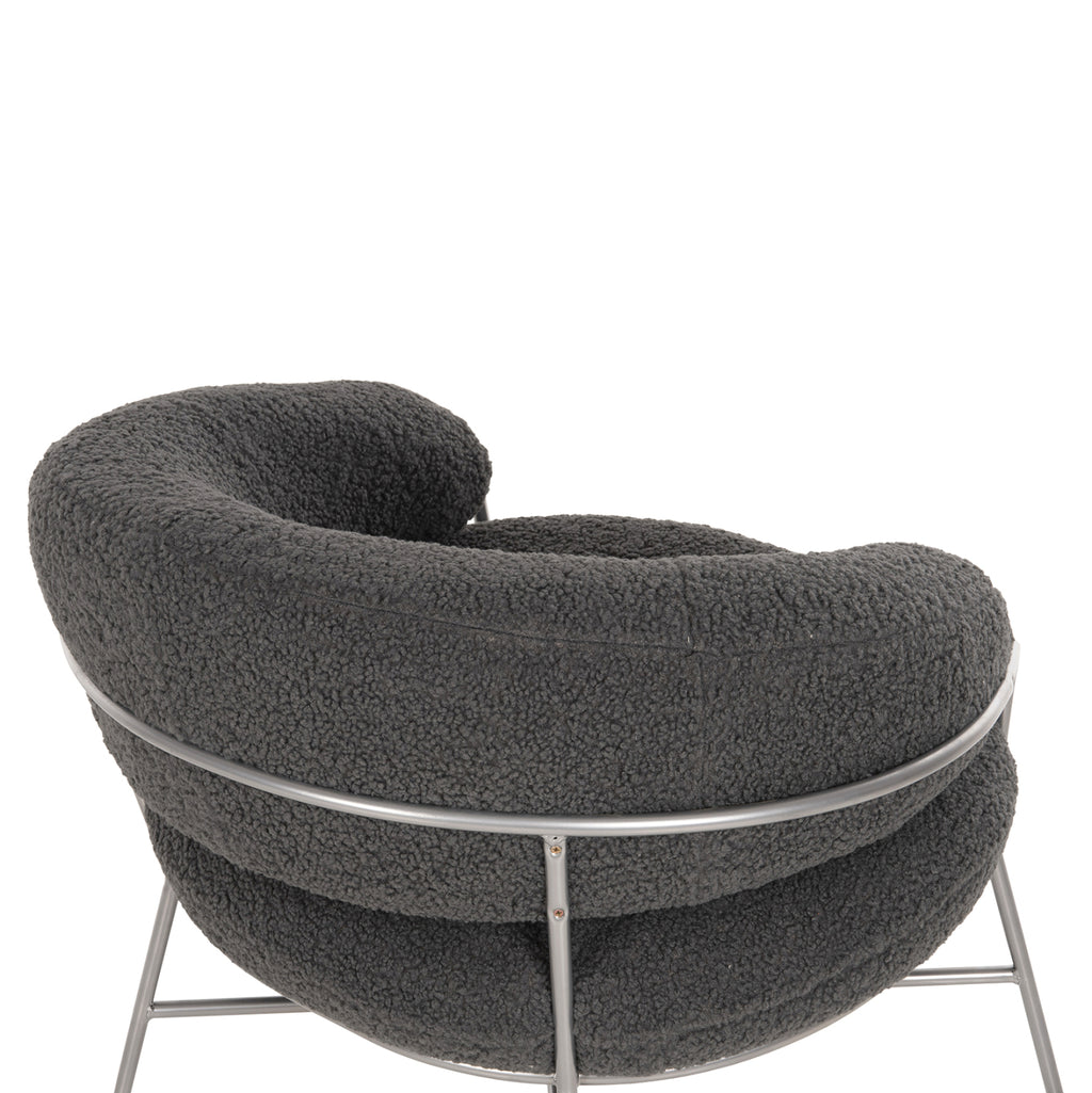 Фотьойл TRUDI в СИВО със СРЕБЪРНА метална рамка е красив. Характеристиката, която отличава този фотьойл, е, че е кръгъл, като облегалката е отделна от седалката. Целият фотьойл е тапициран с висококачествена топла материя BOUQUET, което го прави красив и ориентир във вашата всекидневна. Той съчетава стил и комфорт и можете да го поставите до камината, на прозорец или дори в спалнята си и да се оставите да бъдете обгърнати от неговата „прегръдка“.