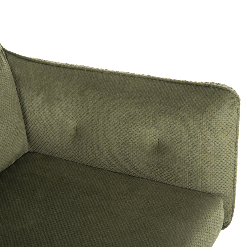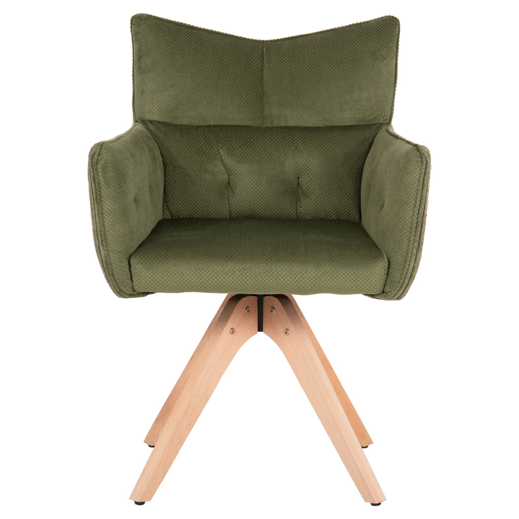 Фотьойлът QUILL е красив избор за вашата трапезария. Гърбът е средно висок и в комбинация с ръцете предлага комфорт и правилна опора. Дамаската е изработена изцяло от качествена дамаска в ЗЕЛЕН цвят с различна техника от външната страна на фотьойла, а опората е изработена от основа и 4 крака от бук в цвят НАТУРАЛ. РАЗМЕРИ: 61x57.5x85-91H см. Размери на седалката: 42х43 см. Размери на гърба: 54х37-43см. Височина на ръцете: 68,5 см. Височина на седалката: 49 см. Височина на крака: 41 см. Разстояние между краката: 39,5-49х39,5-49 см. МАТЕРИАЛИ НА ИЗРАБОТКА: Краката са изработени от масивна букова дървесина. Букът е твърдо, здраво, еластично и тежко дърво с малки пори. Използва се главно за конструиране на рамки и извити предмети, и като цяло мебели като столове и т.н. Тапицерията е изработена от 100% висококачествена полиестерна тъкан, придаваща на фотьойла привлекателен вид. Полиестерът е общ термин за всяка тъкан, която е направена от полиестерни прежди или влакна, което е синтетичен материал. Той е много устойчив и особено устойчив на много химикали и е популярен плат, тъй като е устойчив на свиване и разтягане. Освен това е устойчив на бръчки и ожулвания, а влакната, използвани за създаването му, са много здрави и леки. ПОДДРЪЖКА: Благодарение на издръжливите строителни материали, фотьойлът е удобен за употреба. Като цяло полиестерната тъкан е лесна за поддръжка и може да се пере и суши у дома. Но тъй като това е кресло, препоръчваме химическо чистене. *Продуктът се предлага разглобен във фабрична опаковка. ** Цветопредаването на продукта може леко да се различава от неговото фотографско представяне на вашия екран.
