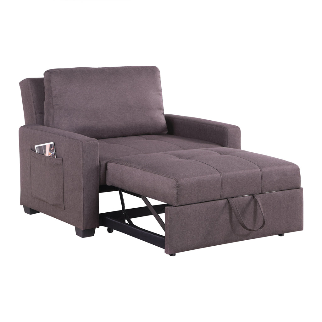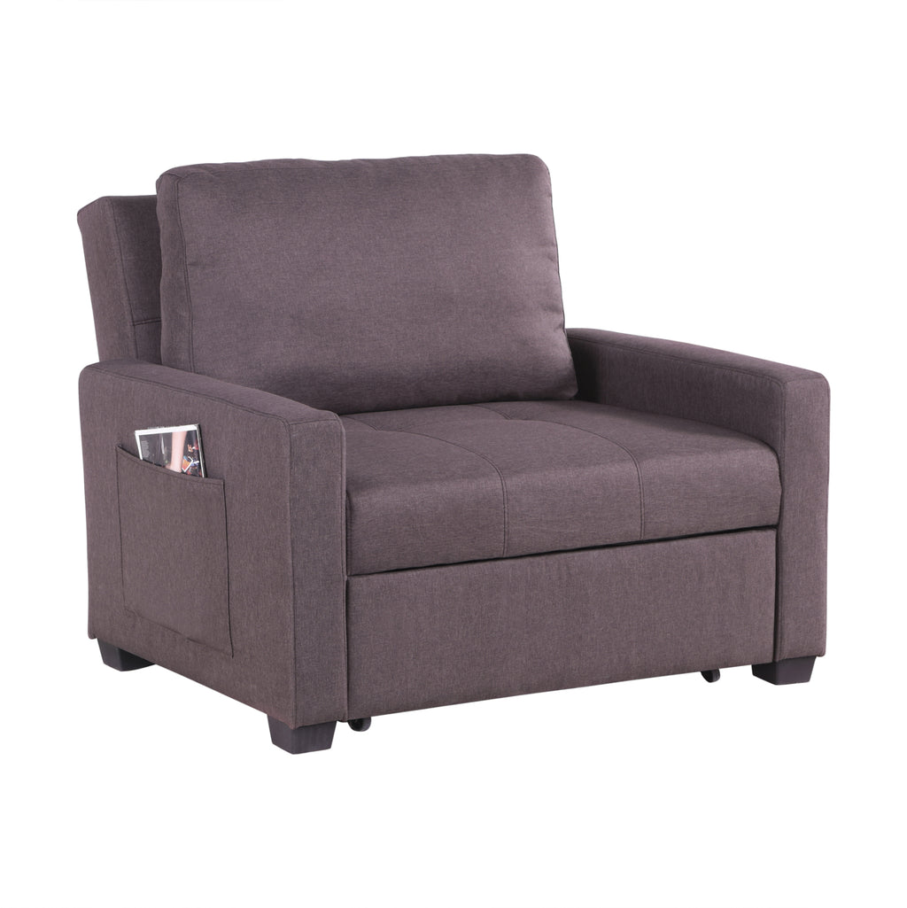 Кресло-легло KANNA е въплъщение на практичност и красив стил. Това е късо кресло, тапицирано с качествена дамаска BROWN и широка седалка. Подлакътниците са къси с практични джобове за дребни вещи от външната им страна, а удобната възглавничка на гърба допълва композицията. Елементът, който го отличава обаче, е, че с едно просто движение може да се превърне в легло, което предлага качествено решение за неочаквани нощувки, или дори като второ легло в домове с ограничено пространство, като например студентски къщи.