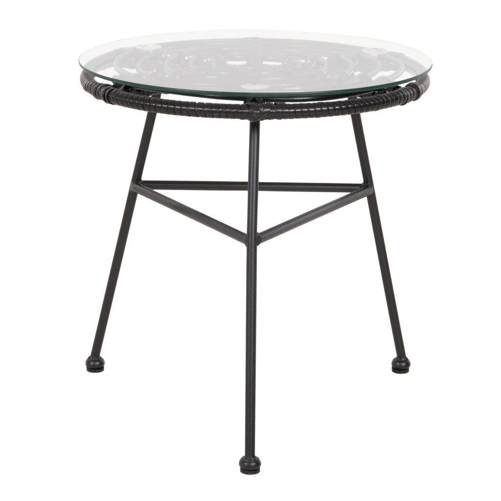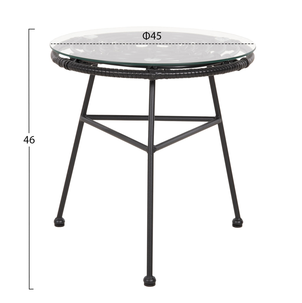 Късата външна маса от серия мебели АЛЛЕГРА е с ЧЕРНА метална конструкция с 3 крака. Горната част на рамката е покрита със синтетичен ратан в ЧЕРЕН цвят и в кръгова подредба, така че да се постави защитното стъкло с кръгла повърхност. Размерите му го правят идеален за по-малки пространства, както професионални, така и домашни. РАЗМЕРИ: Φ45x46Y см. Разстояние между краката: 45х45 см. Дебелина на предпазното стъкло: 5мм КОНСТРУКТИВНИ МАТЕРИАЛИ: Рамката е метална с електростатично боядисване. Електростатичното боядисване е процес на сухо покритие, използван като метално покритие. Електростатичното боядисване е нанасяне на сух прах чрез електростатичен процес, който след това се „свързва“ към метала чрез топлина. Плотът е изработен от нечупливо стъкло или безопасно стъкло. Закаленото или "нечупливо" стъкло е вид безопасно стъкло около четири пъти по-здраво от обикновеното стъкло. И за разлика от обикновеното стъкло, което може да се пръсне на назъбени парчета, когато се счупи, закаленото стъкло се разбива на малки, относително безобидни гранулирани парчета. В резултат на това закаленото стъкло се използва в среди, където човешката безопасност е приоритет, като например жилищни приложения и т.н. Синтетичният ратан е изработен от висококачествени изкуствени влакна. Това придава на конструкцията изключителна здравина и издръжливост при екстремни горещини или студени условия. ПОДДРЪЖКА: От горното се вижда, че масата не се нуждае от специална поддръжка. Достатъчно е избърсване с влажна кърпа. ПРЕДИМСТВА: • Класически и вечен дизайн • Лесна поддръжка • Качествени строителни материали • Невероятно съотношение цена-качество **Точното цветопредаване на продукта може леко да се различава от действителния продукт поради различните настройки на всеки монитор.