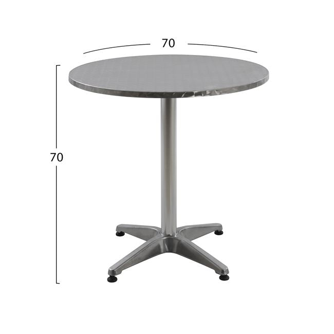 Кръгла маса FELIX, алуминий с 4 крака и Φ70 см диаметър на повърхността. Изработена е от алуминий и това я прави подходяща както за вътрешна, така и за външна употреба. С една повърхност, която покрива ръбовете. Размери: Φ70х70см. Размери на основата: Φ58x1.00mm дебелина Продуктът се предлага в разглобена опаковка, има инструкции за сглобяване в опаковката.