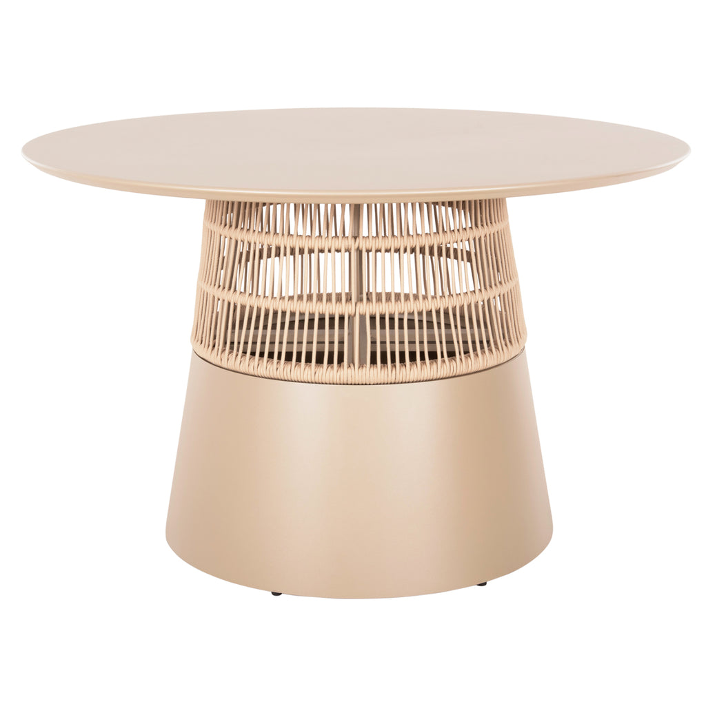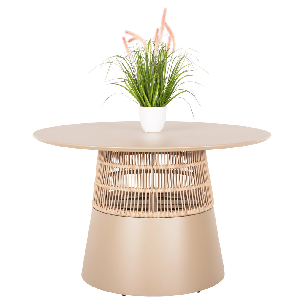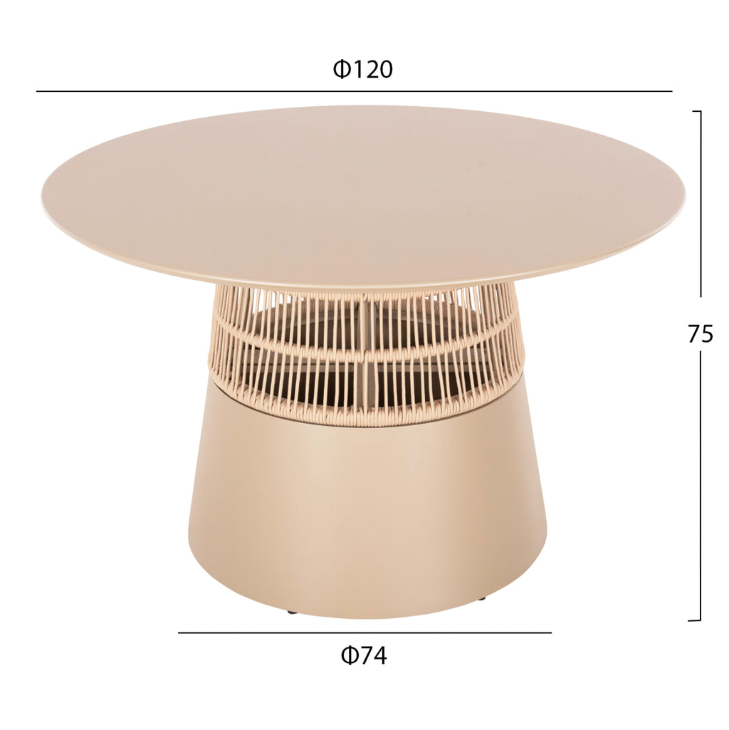 SAEID е кръгла (ротонда стил) алуминиева маса със задоволителни размери в цвят ШАМПАНСКО. Масата е базирана на конична и цилиндрична конструкция, изработена от алуминий ШАМПАНСКО и БЕЖОВО въже. Тази маса ще подобри естетически всяко външно професионално пространство или дори у дома, като същевременно може да се съчетае с много различни стилове и цветове, както и с различни стилове столове. РАЗМЕРИ: Φ120x75Y см. Дебелина на повърхността: 2,5 мм. Размери на основата: Φ74. Размер на въжето: 6 мм. МАТЕРИАЛИ ЗА КОНСТРУКЦИЯ: Масата е изработена от алуминий и синтетично полиестерно въже. Алуминият е метал с отлични механични свойства и е много устойчив на различни форми на корозия по своята същност и изисква минимални разходи за поддръжка. Полиестерното въже е изработено от полиестерни прежди или влакна, което е синтетичен материал. Влакната, използвани за създаването му, са много здрави и леки. ПОДДРЪЖКА: Материалите за конструкцията позволяват лесна поддръжка на масата. Избършете с влажна кърпа или дори с меки препарати и масата ще издържи много години. ПРЕДИМСТВА: • Стабилна и безопасна конструкция • Модерен дизайн • Доставя се несглобен във фабрична опаковка ** Цветопредаването на продукта може леко да се различава от фотографското му представяне на вашия екран.