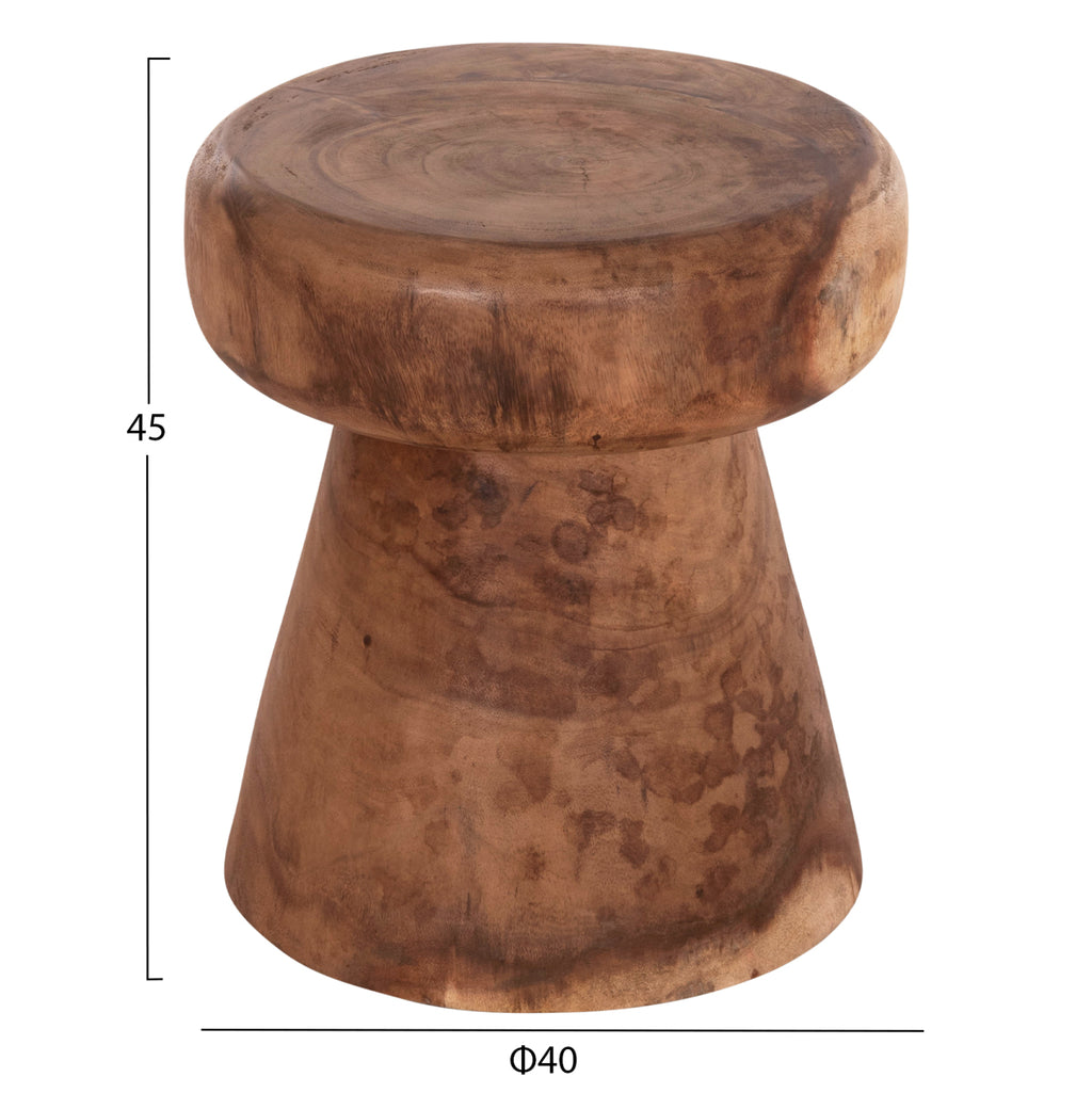 Открийте уникалната кръгла помощна маса CUPRE от масивно дърво SUAR в НАТУРАЛЕН цвят. Рустик дизайнът придава вечно и топло усещане на вашето пространство. Идеалният избор е както за дома, така и за хотели или ресторанти и др. РАЗМЕРИ: Φ40x45H cm. МАТЕРИАЛИ НА ИЗРАБОТКА: Холната маса е изработена от масивно SUAR дърво. Когато говорим за масивно дърво, имаме предвид дървета, направени изцяло от ствола на дърво. Масивната дървесина е най-скъпият избор по отношение на дървесината, но се откроява със своята вечна естетика. Suar wood е дървесината на дървото Albizia Saman, понякога наричано дъждовно дърво, дърво, произхождащо от Южна Америка. Това е красиво добре оформено дърво, с много пресичащи се "води". "Сърцевината" на дървото е близка до цвета на ореха, докато останалата част от тялото на дървото е по-светла на цвят. Всяко парче суарско дърво, както всяка снежинка, е уникално. Зърнистостта на дървото може да варира значително, правейки едно парче да изглежда по-желано за един конкретен клиент от друго. Правилно изсушено, суровото дърво е много здраво и издръжливо. -Съществуващите пукнатини или такива, които могат да се образуват с течение на времето се дължат на свиването-разширяването на живия организъм наречен масивна дървесина, а не са производствен дефект, придавайки оригиналност и уникален дизайн на вашето пространство. По време на производствения процес съществуващите пукнатини се изглаждат и стабилизират с материал от същата дървесина. Поради това МОЖЕ ДА ИМА ЦВЕТОВИ ВАРИАЦИИ И РАЗЛИКИ В РАЗМЕРИТЕ НА ПРОДУКТА поради размерите на обработената дървесина. Това не са дефект на продукта. ПОДДРЪЖКА: Холната маса не се нуждае от специална поддръжка. Достатъчно е минаване с влажна кърпа, а ако има петна с нежен спрей от многото на пазара. Като цяло, дори и при петна, тайната е бързото почистване, преди дървото да има време да се "напои".