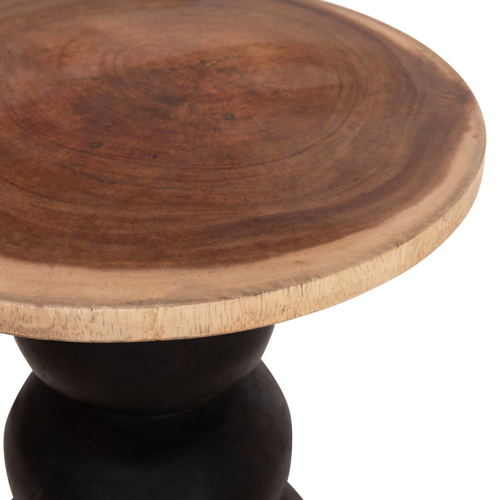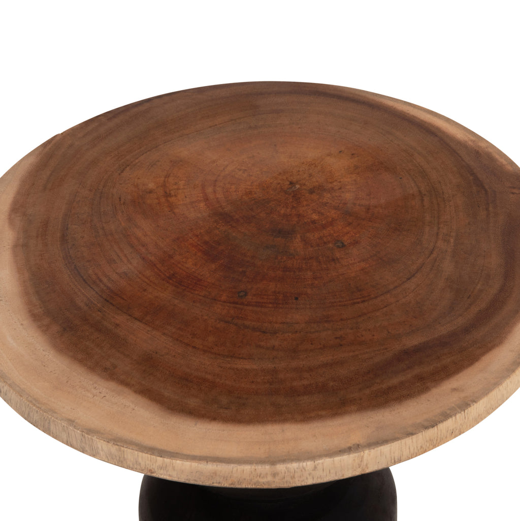Кръгла странична маса JACKY, изработена от дърво SUAR в естествен и черен цвят. Страничната маса JACKY е елегантна и практична мебел, която се откроява със своята естествена красота и модерен характер. Комбинацията от дърво SUAR в естествен цвят с черна основа създава впечатляващ естетически резултат, идеален за дневни, спални или професионални пространства с модерна или бохо естетика. Кръглата повърхност подчертава естествените шарки на дървото, предлагайки уникален характер на всяка мебел, докато здравата дървена конструкция осигурява стабилност и дълготрайна издръжливост. Може да се използва като странична маса, нощно шкафче или декоративна основа за растения и предмети. Размери: Φ40x45.5H см. ______________________________________ Строителни материали • Изработена от дърво SUAR, известно със своята здравина и издръжливост. • Естествено покритие на повърхността, което подчертава естествените шарки на дървото. • Основа, боядисана в черен нюанс за модерен контраст. ______________________________________ Поддръжка • Дървото SUAR се поддържа лесно със суха или леко влажна кърпа. • Избягвайте употребата на агресивни почистващи препарати или прекомерна влажност. • Препоръчително е периодично да нанасяте специално масло за дърво, за да остане лъскаво и защитено. __________________________________________ Какво ни харесва • Естествената цветова комбинация, която подхожда на всеки стил на декорация. • Здравата конструкция, изработена от автентична дървесина SUAR. • Гъвкавостта на използване в различни пространства. • Минималистичният дизайн, който подчертава естествеността на дървото. * Съществуващите пукнатини или такива, които могат да се образуват с течение на времето, се дължат на свиването-разширяването на живия организъм, наречен масивна дървесина, и не представляват производствен дефект, придавайки оригиналност и уникален дизайн на вашето пространство. Поради това е възможно да има цветови вариации и разлики в размерите на продукта поради размерите на обработената дървесина. Те не представляват дефект на продукта. ** Цветопредаването на продукта може леко да се различава от фотографското му представяне на вашия екран.